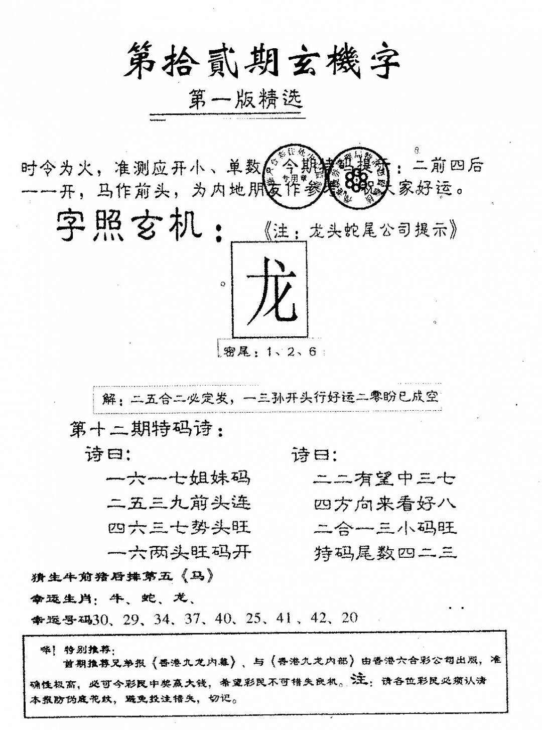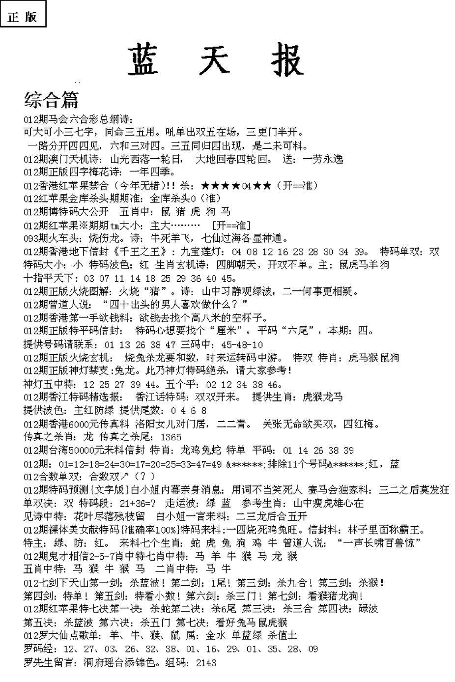 老版天机报