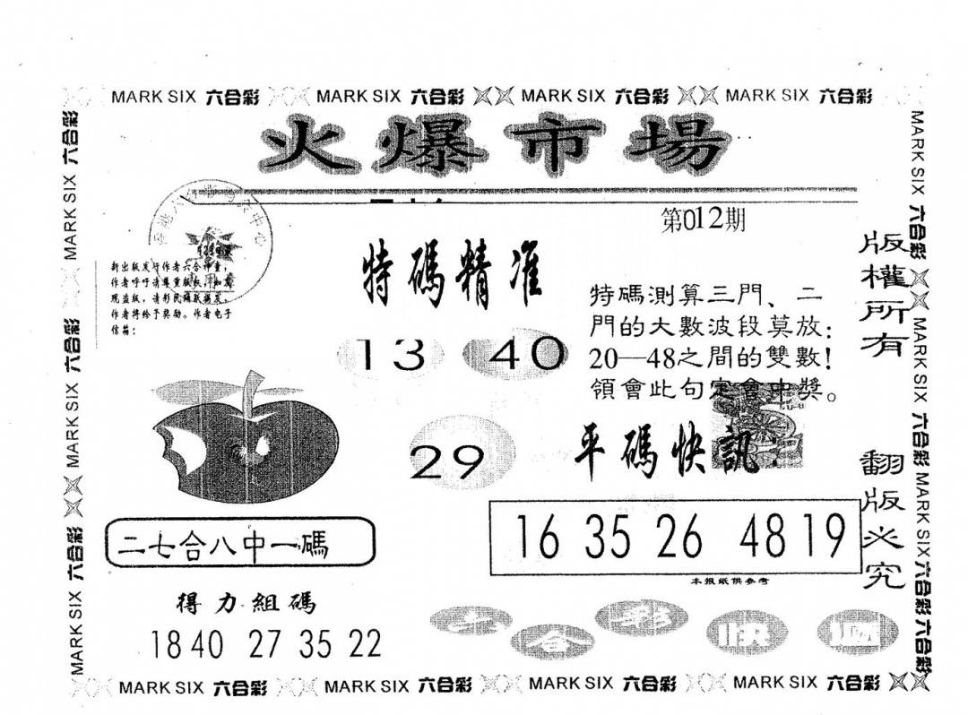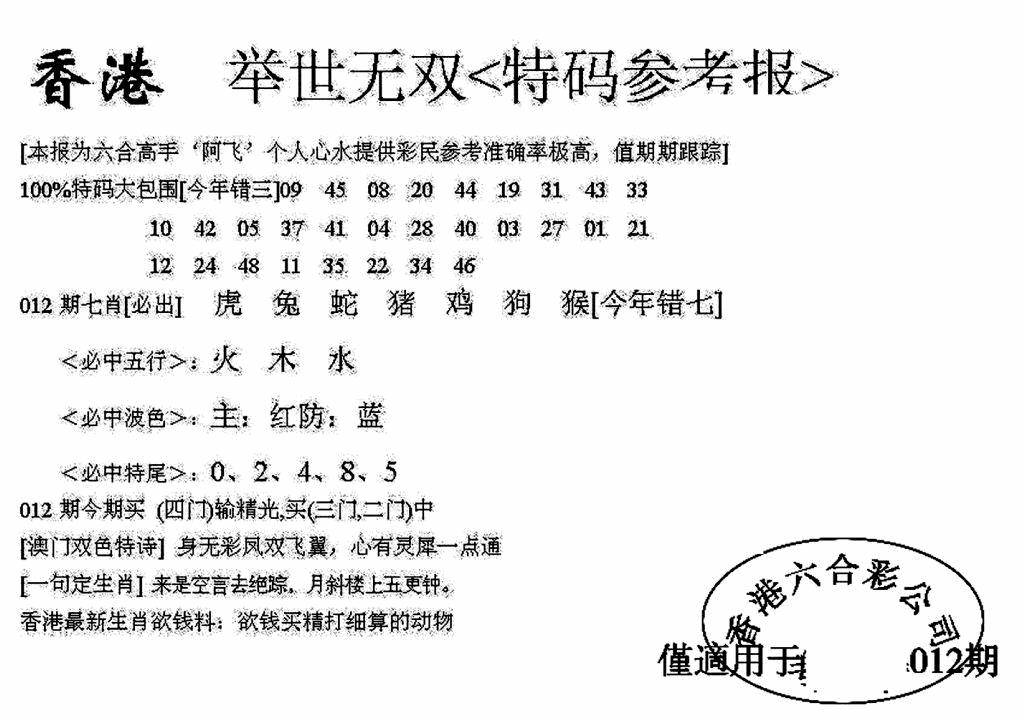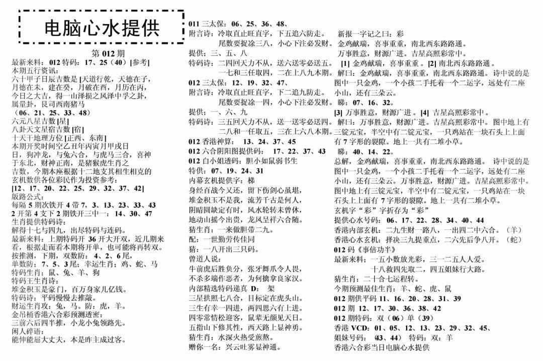 彩卷后庄A(保证香港版)