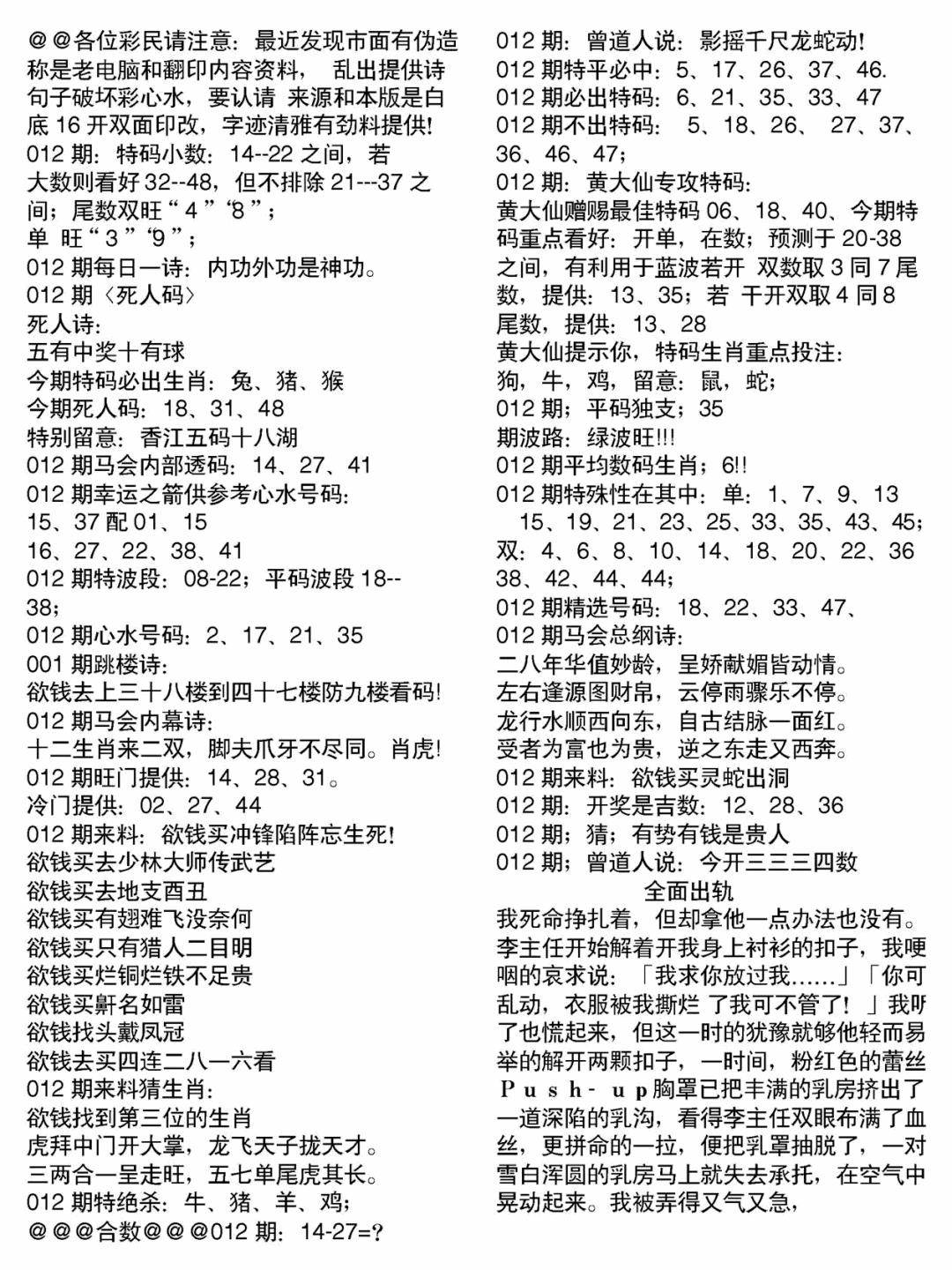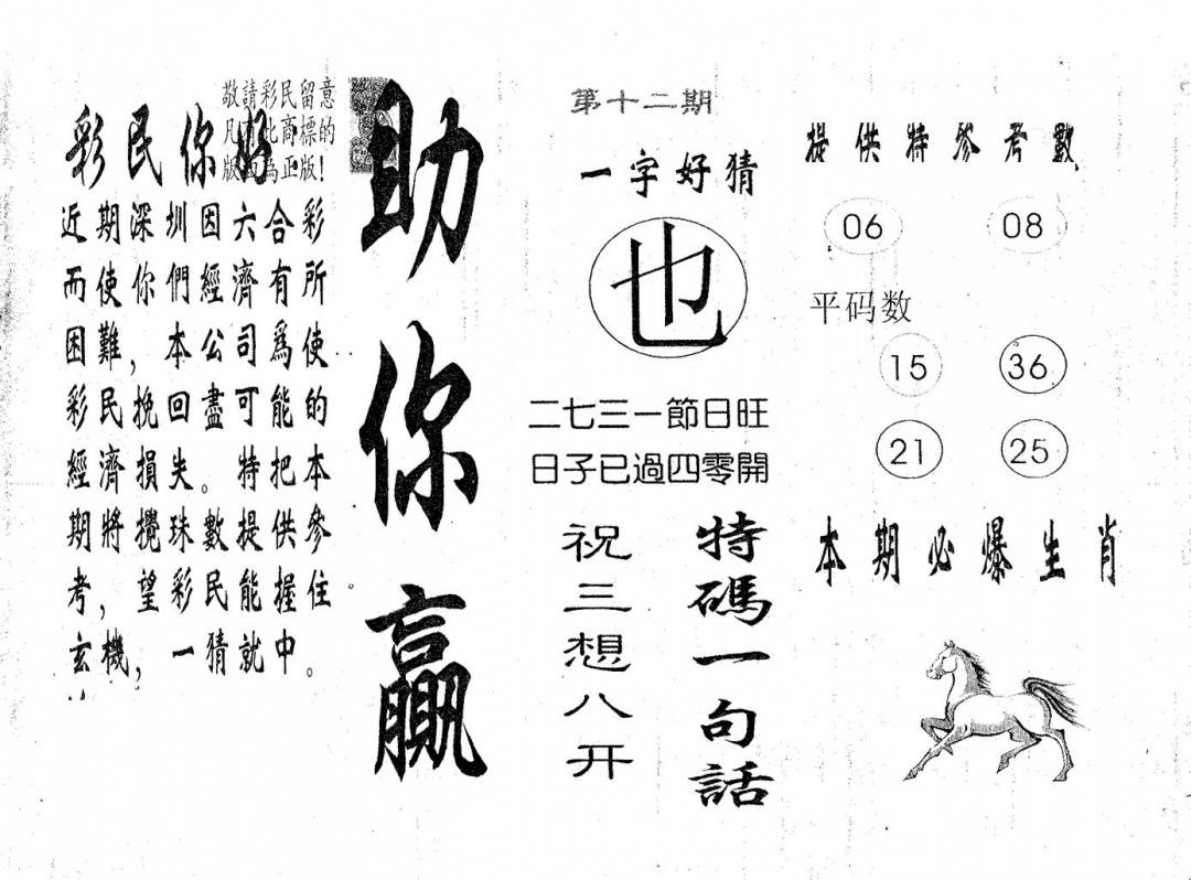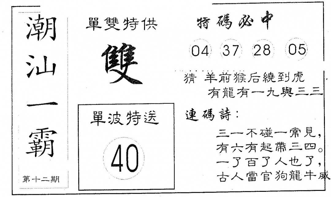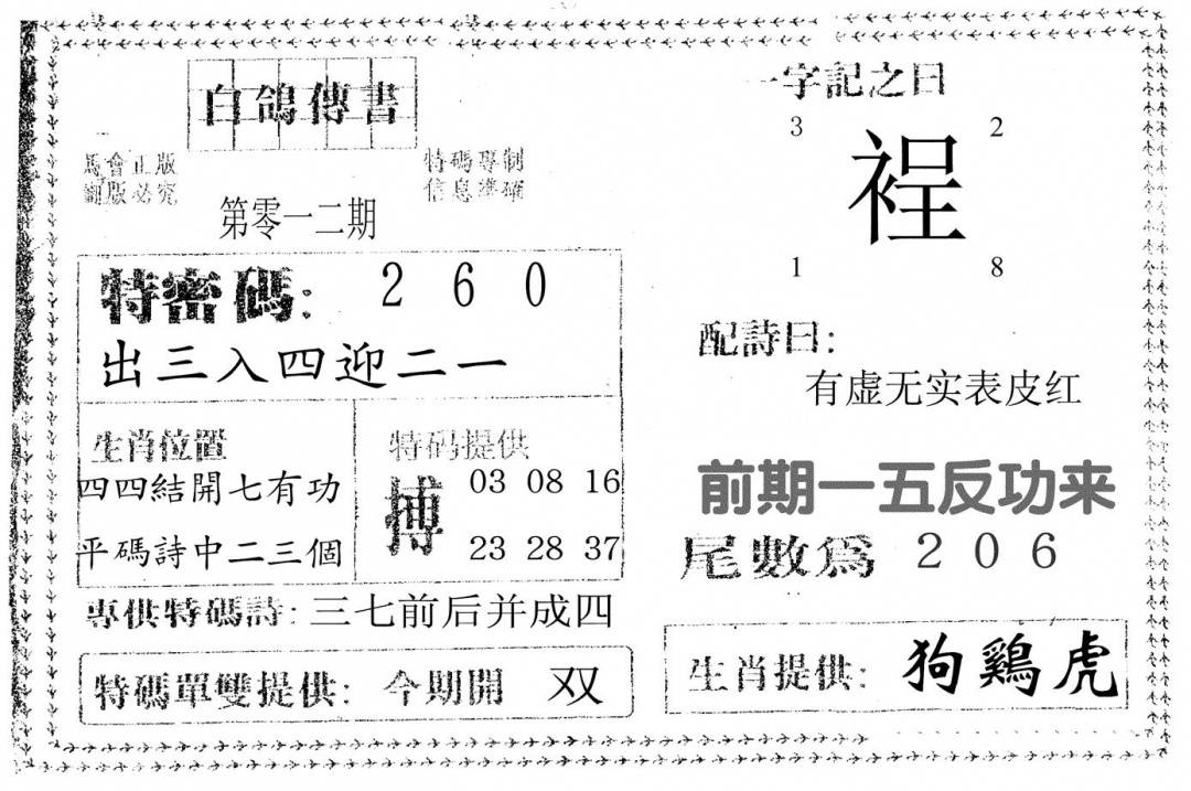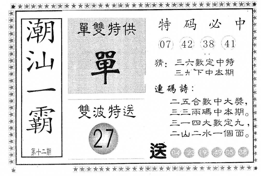 郑小姐特码报A