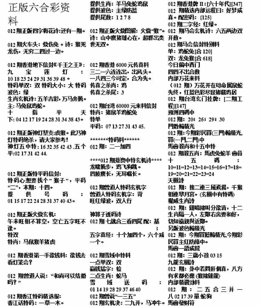 正版六合彩资料B