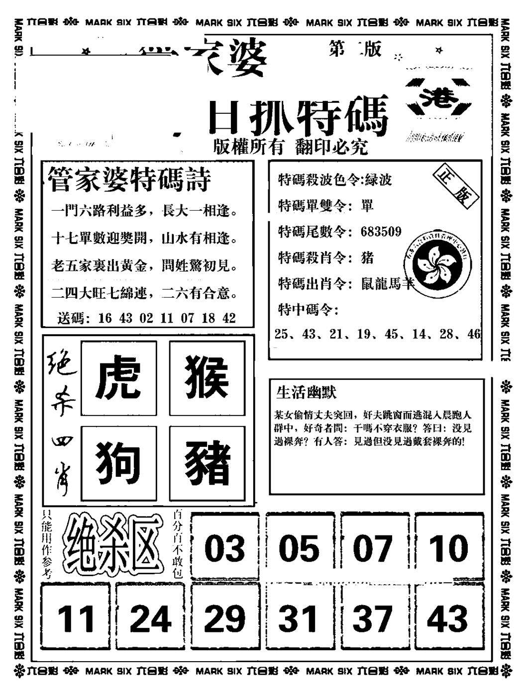 今日抓特码A(正版)