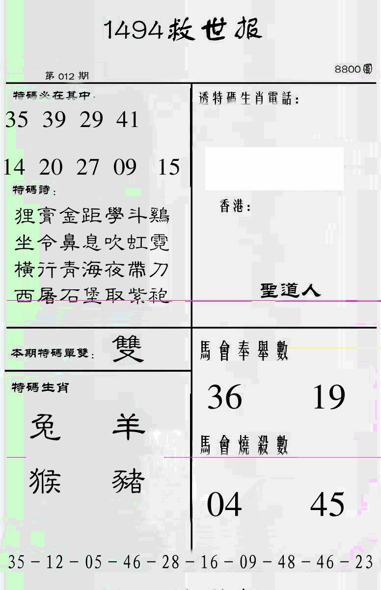 曾道人特码救世报B