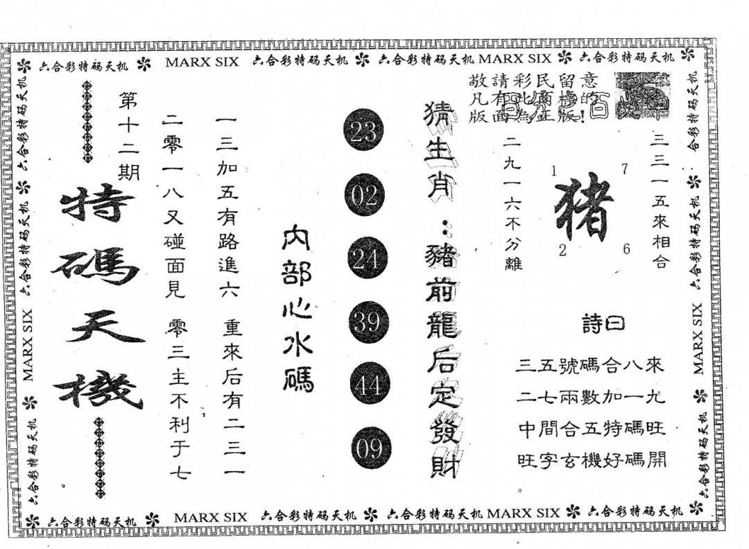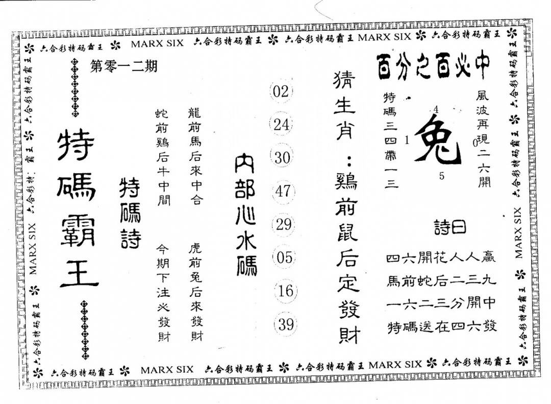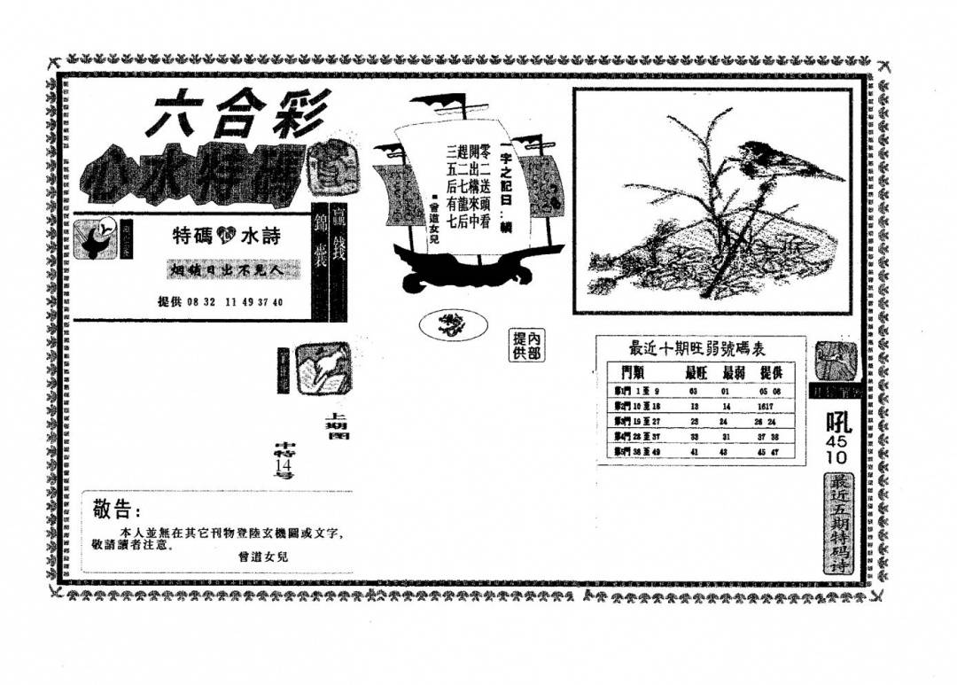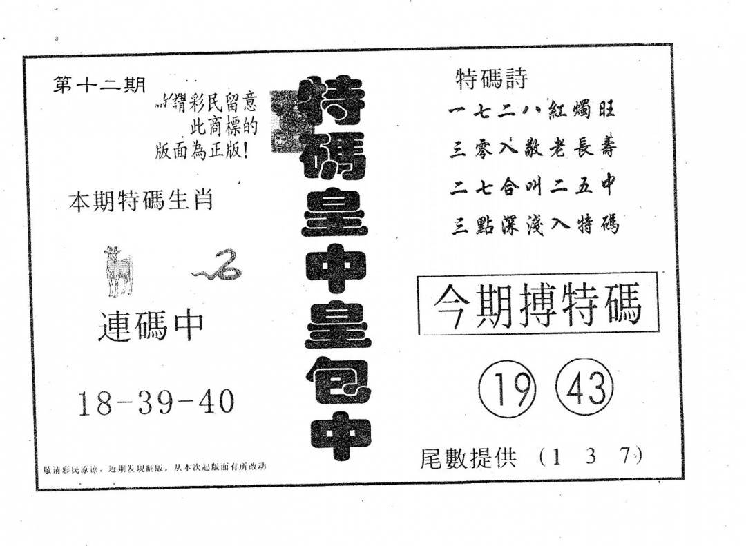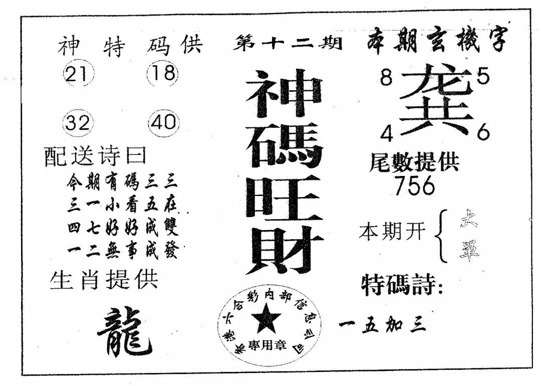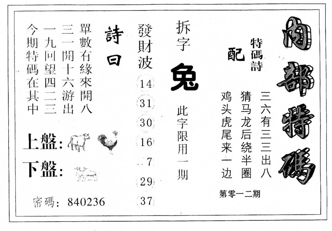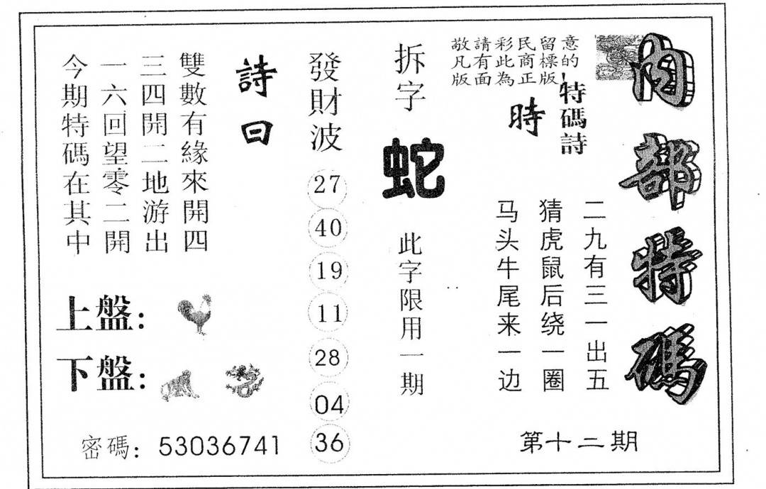 另版心水特码(早图)