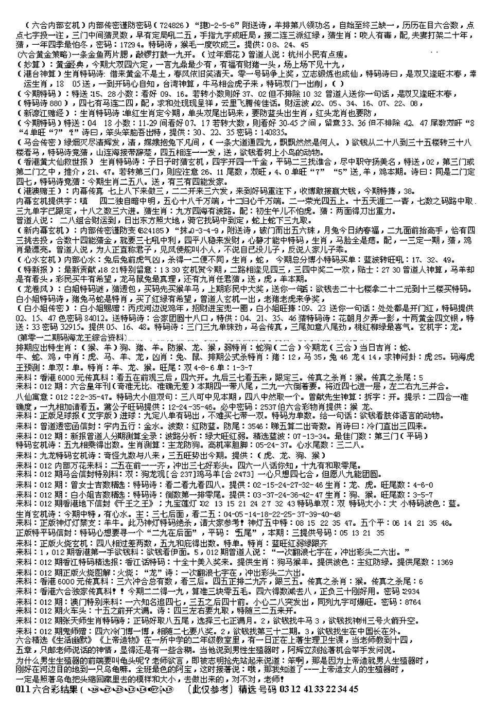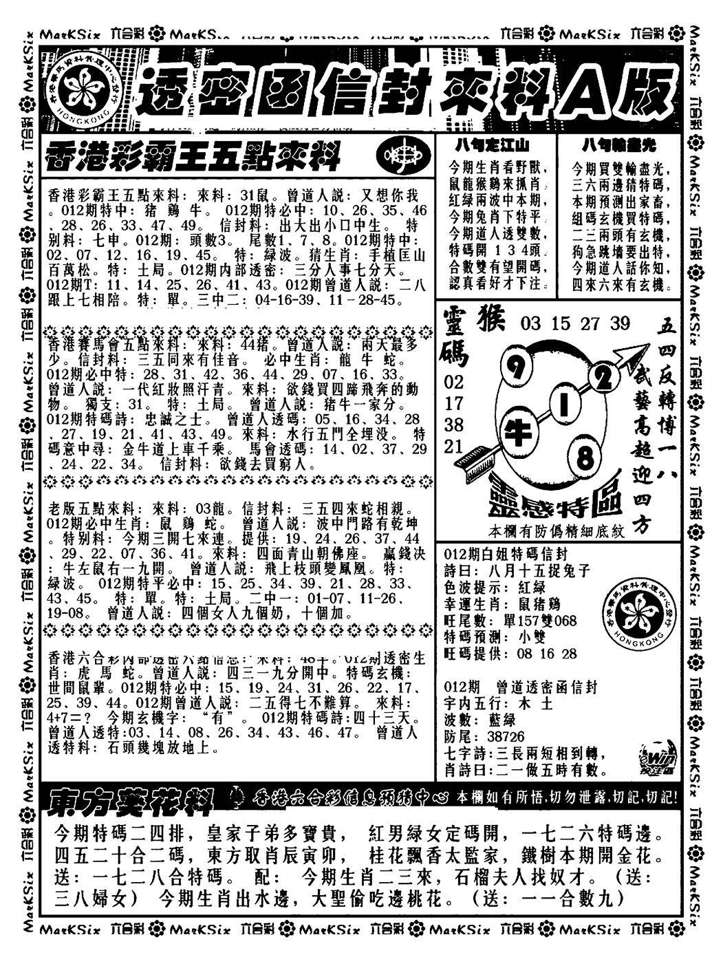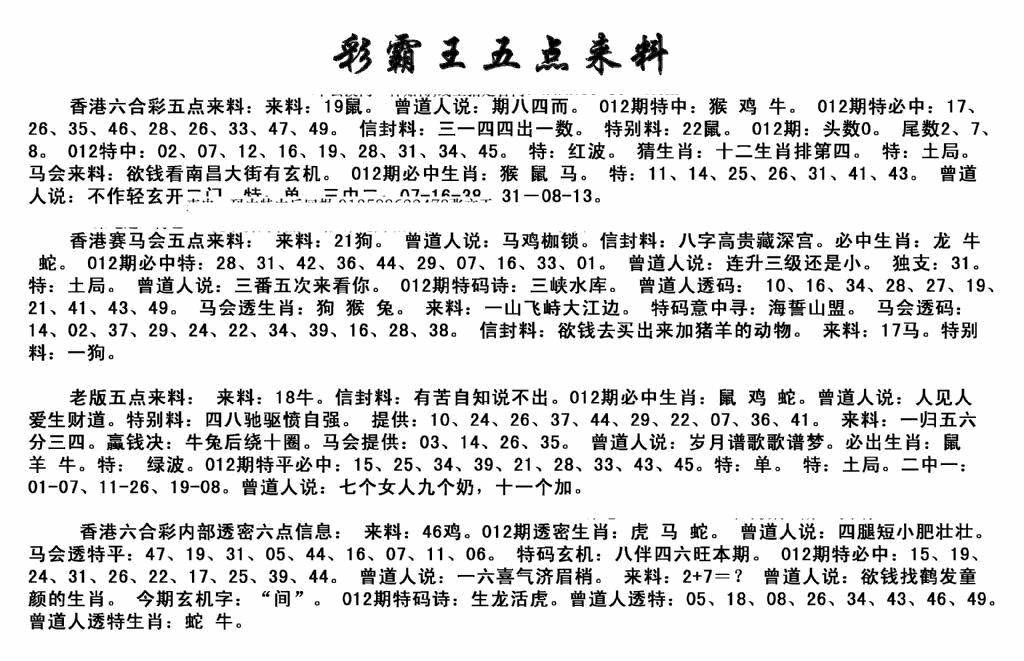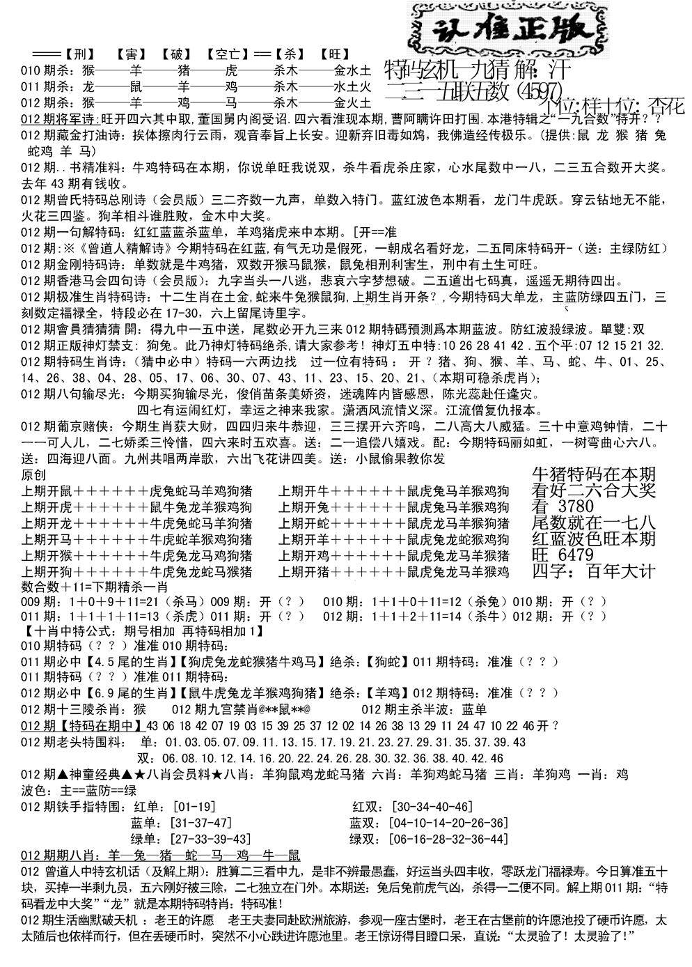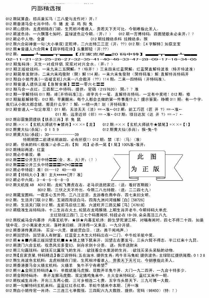 新版内部玄机A