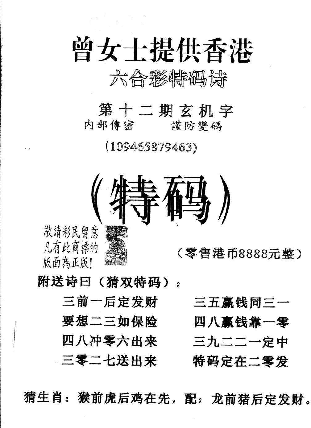 曾女士特码诗