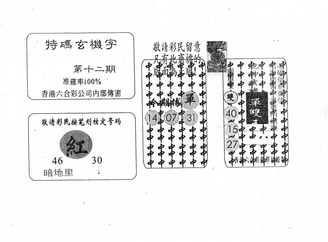另版一心猜特码