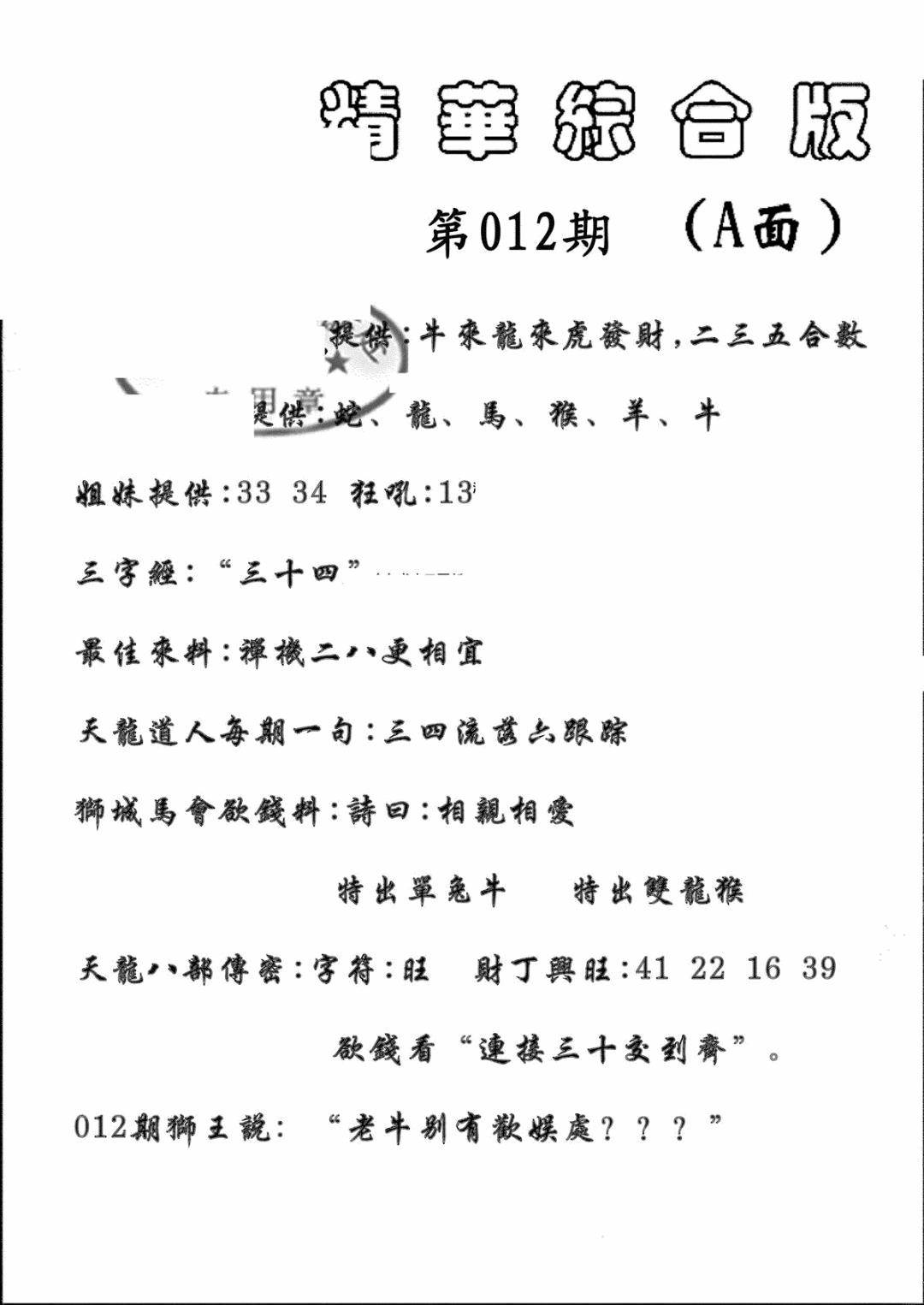 六合救世报+牛头报