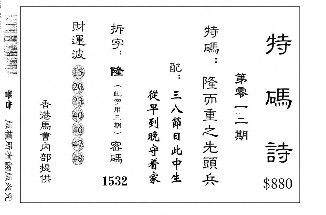 老版880特码诗