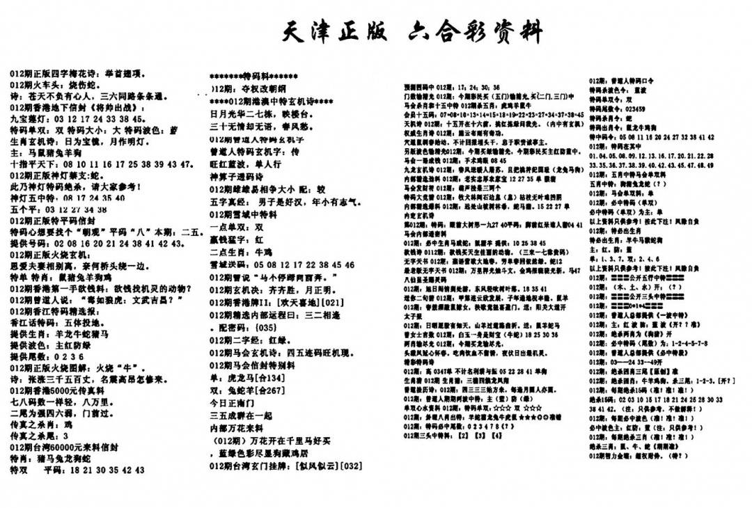 天津正版六合彩资料