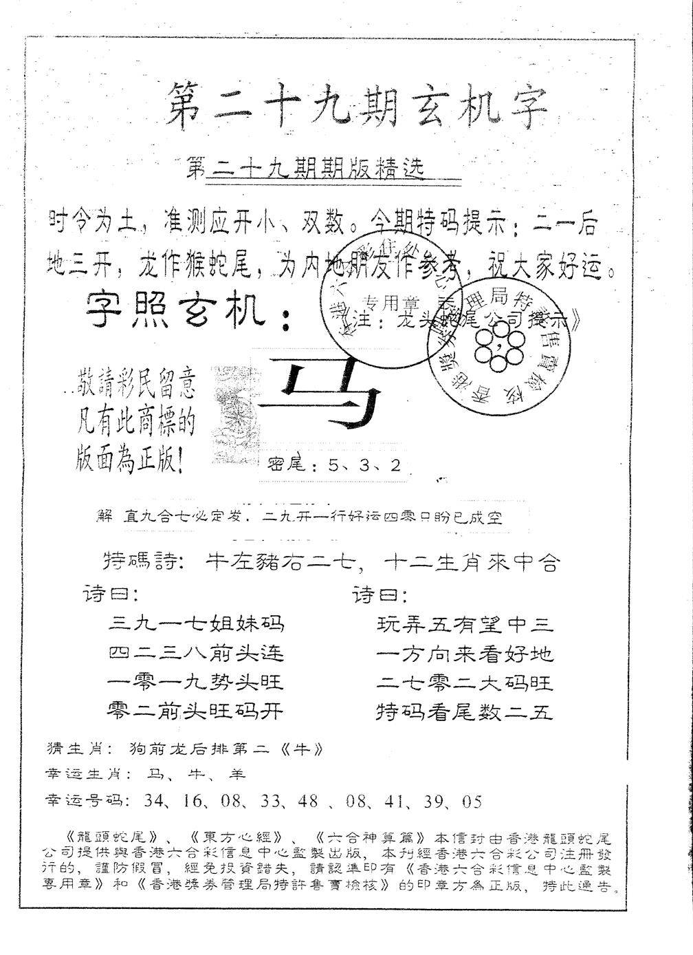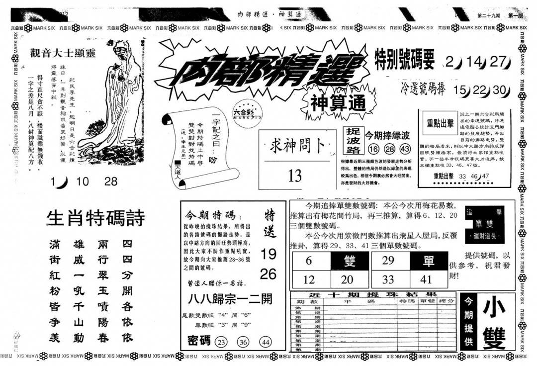 另版黄大仙灵码A