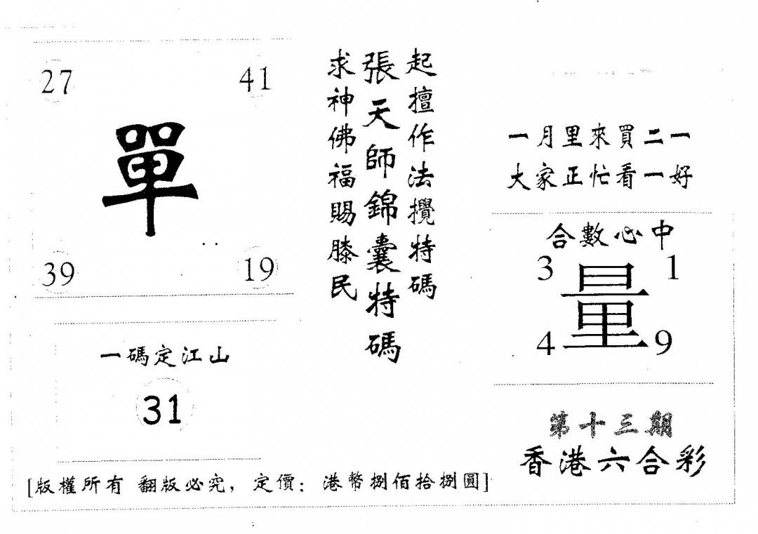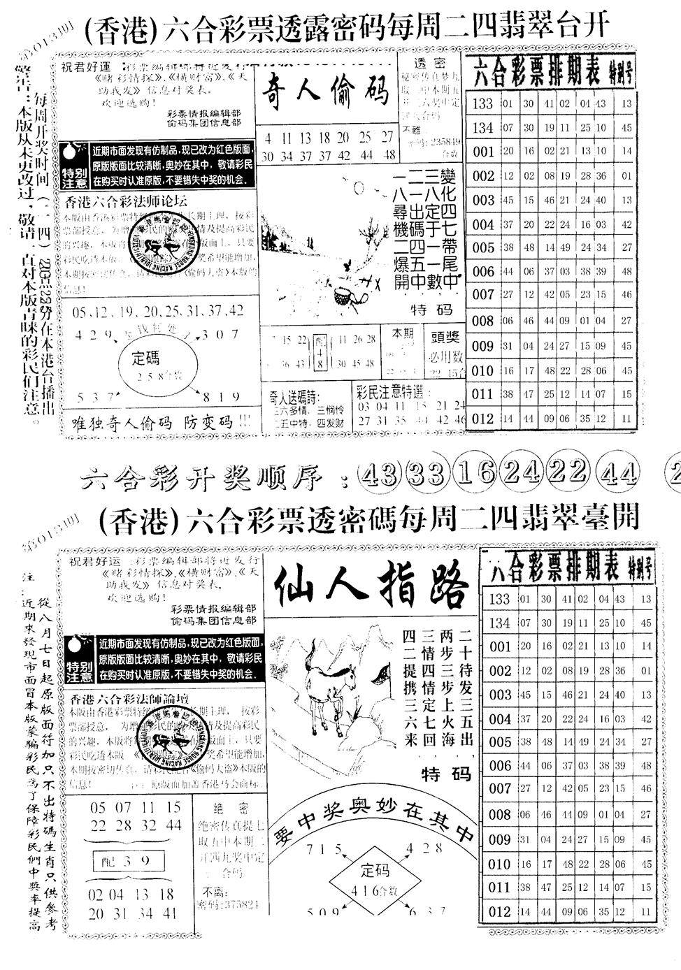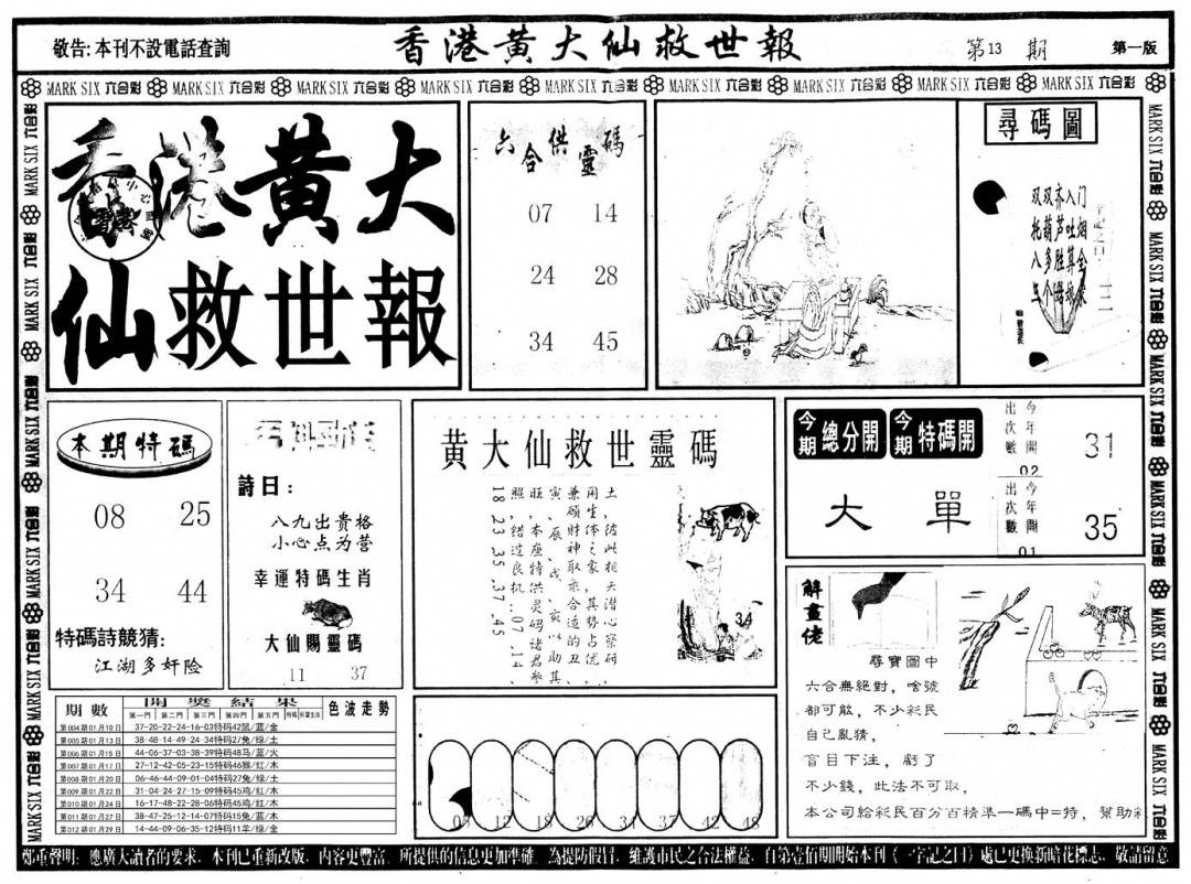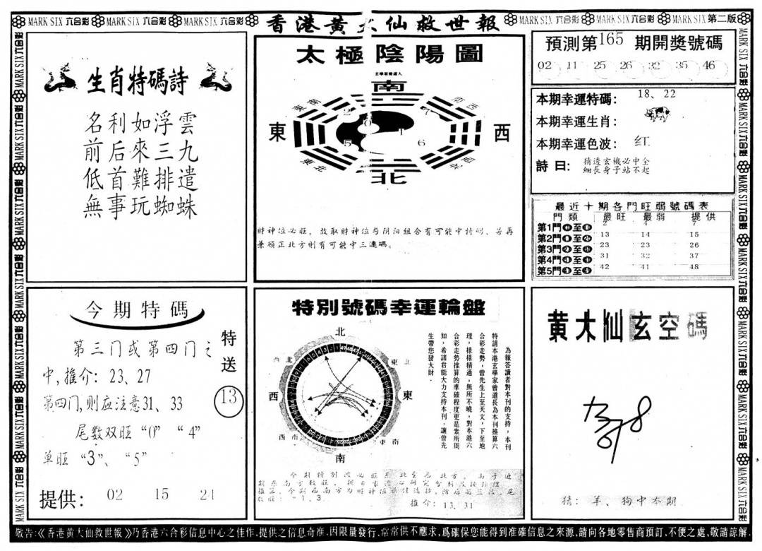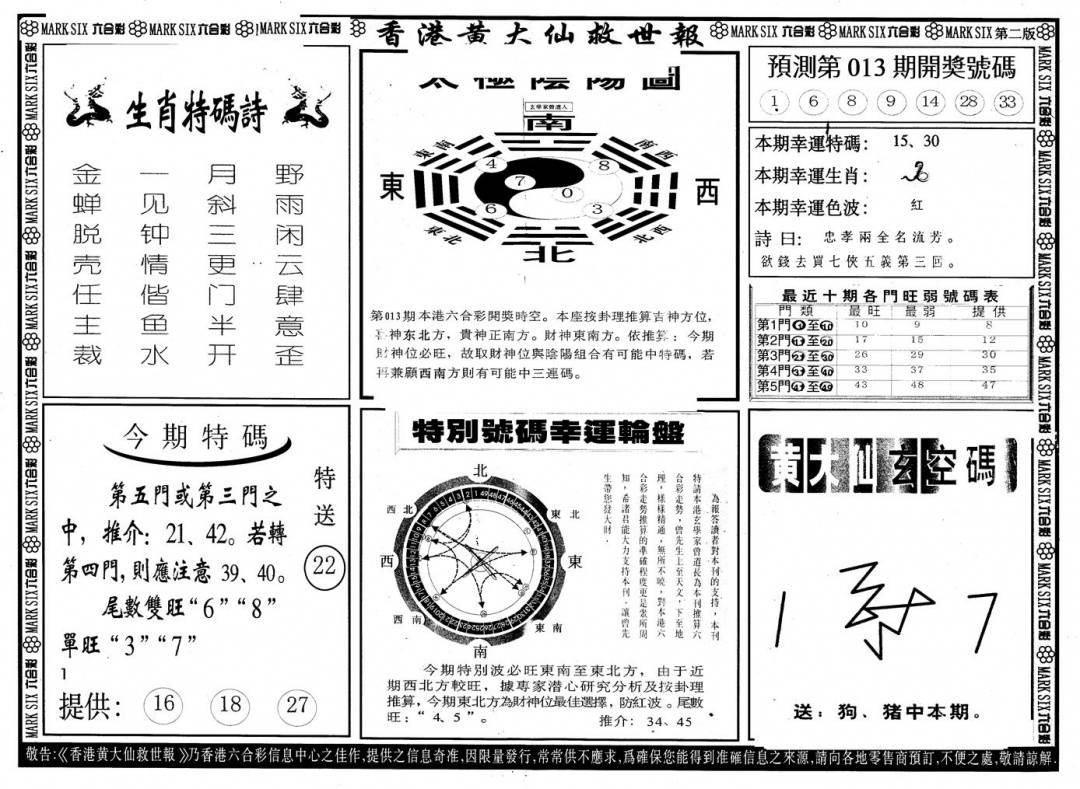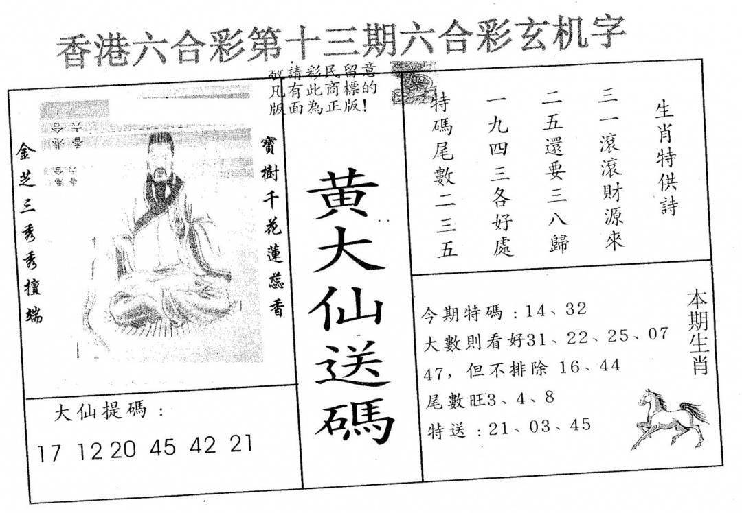另版黄大仙灵码A