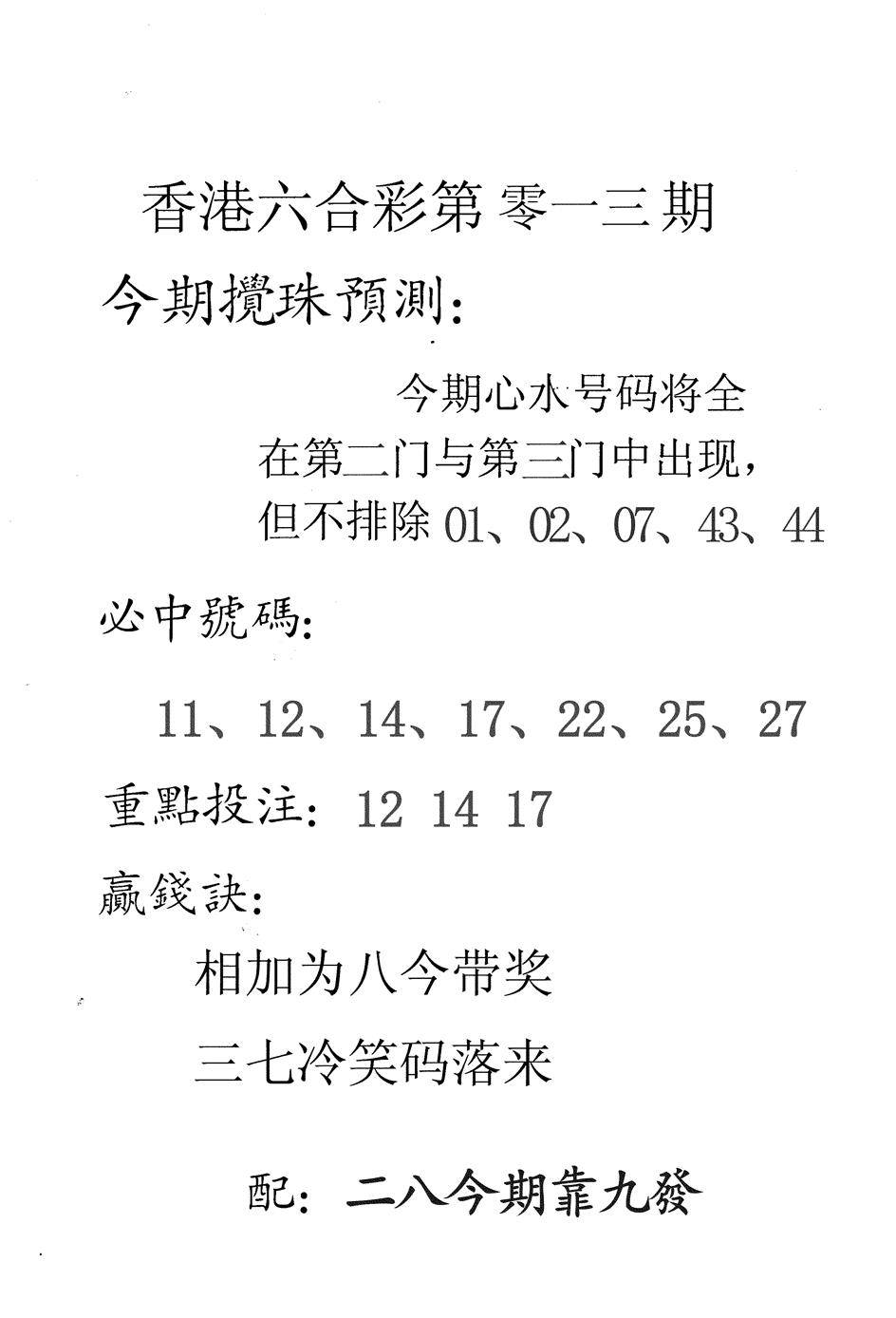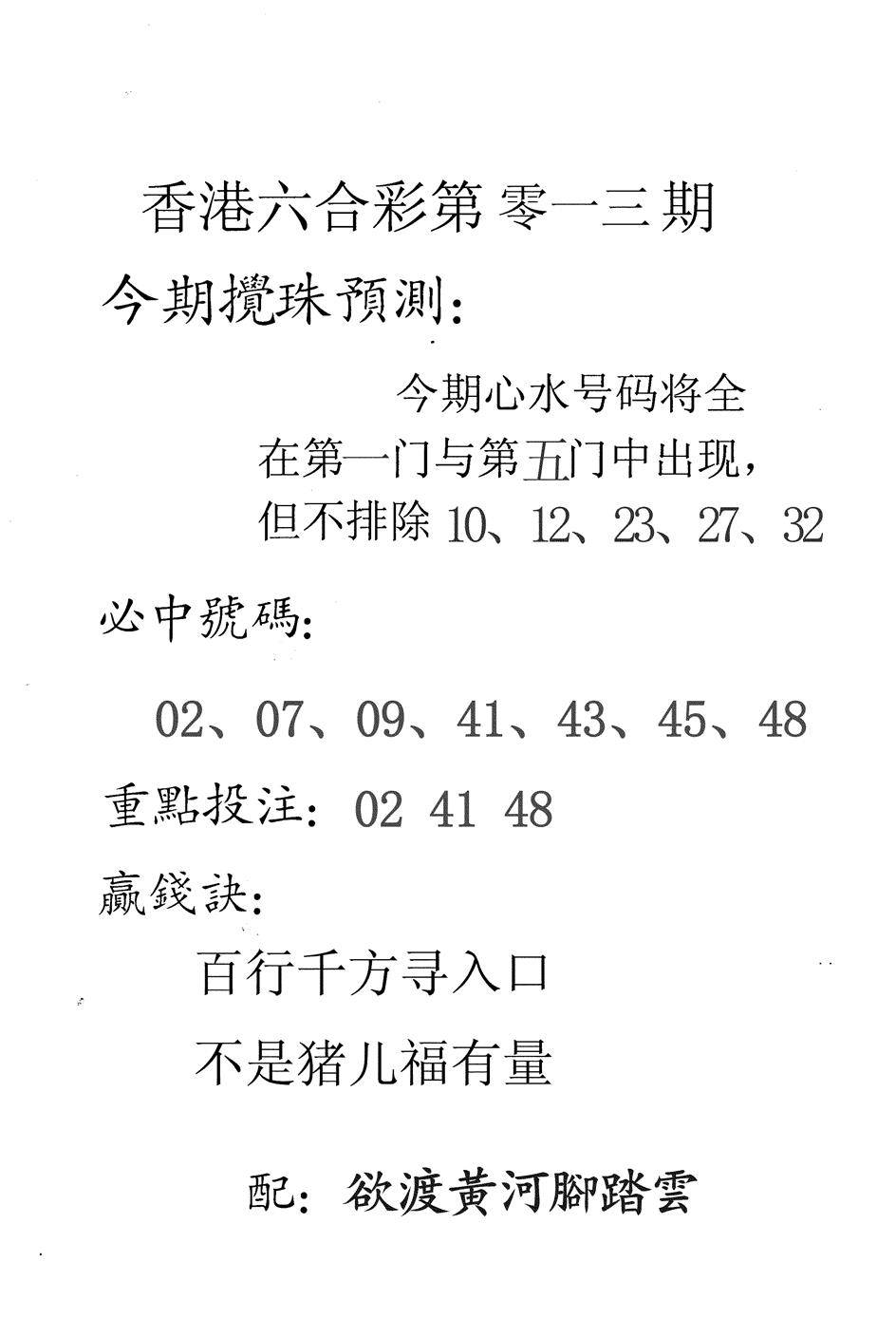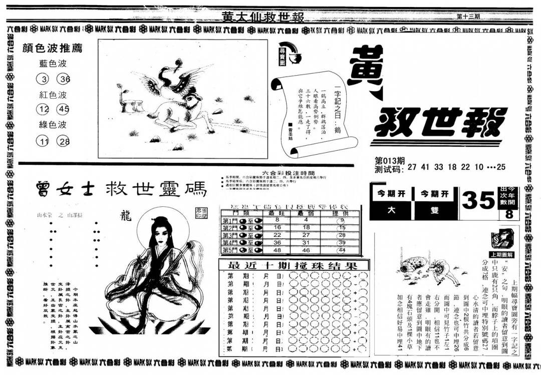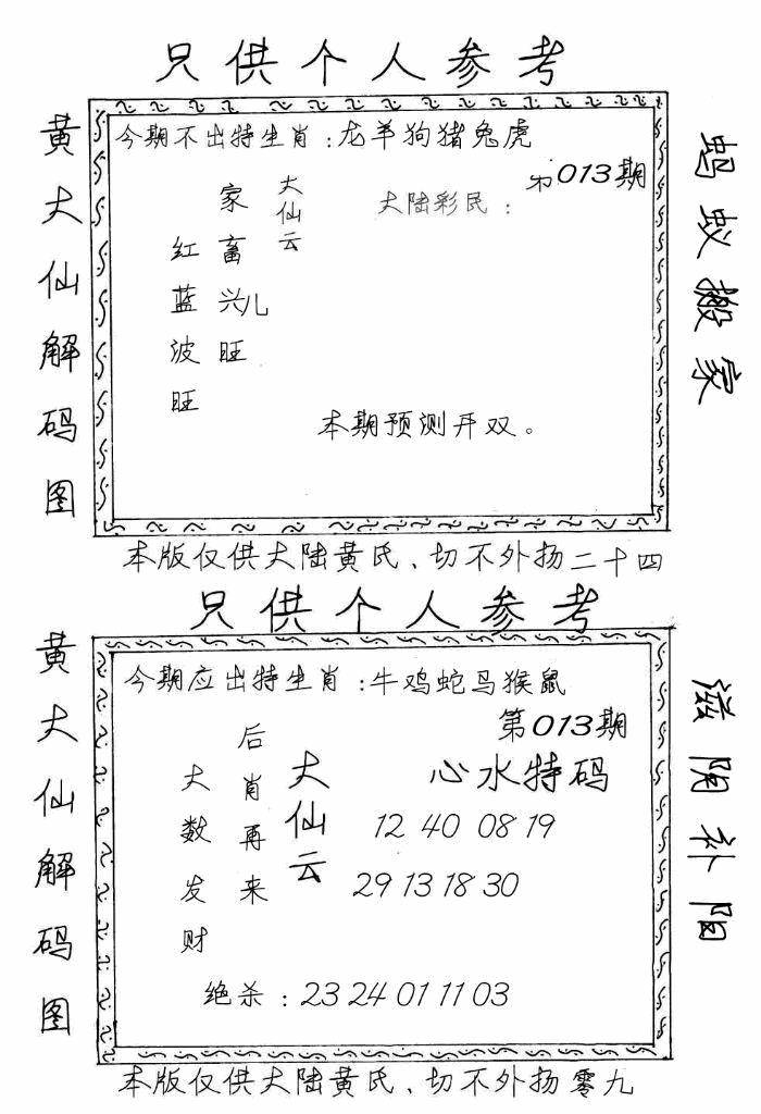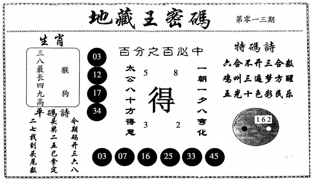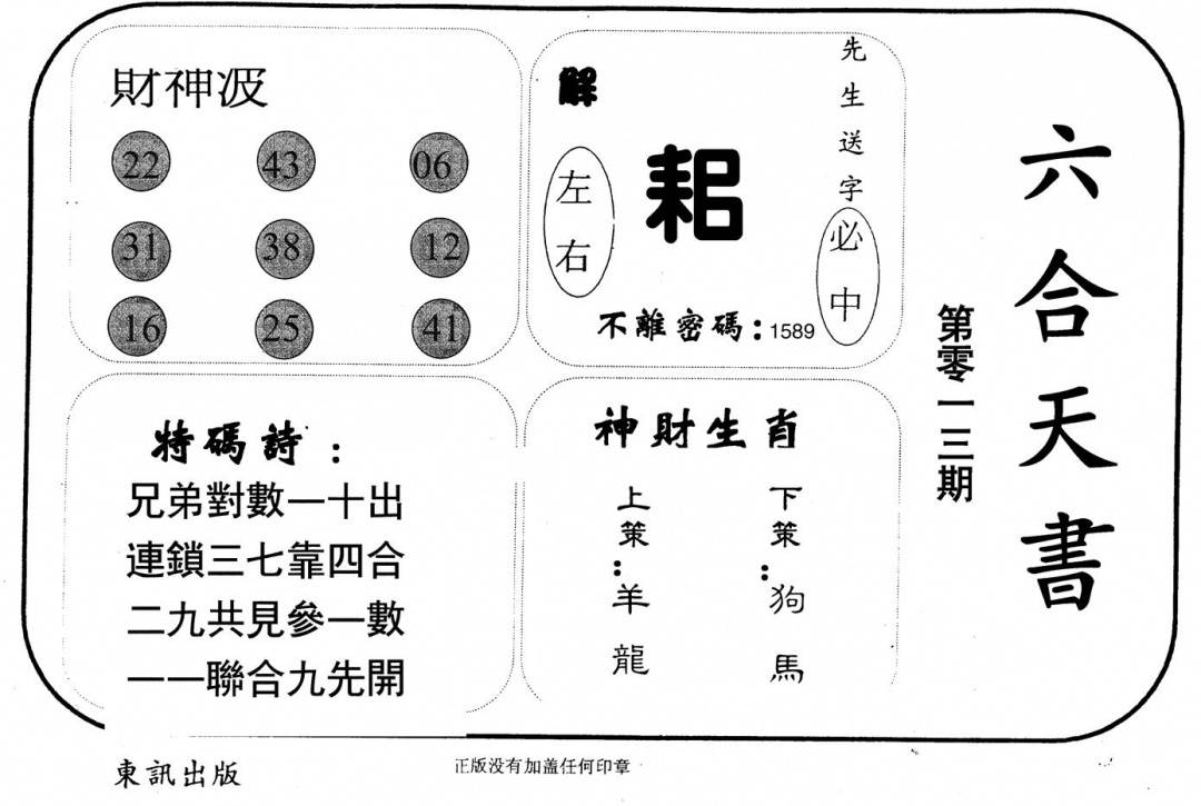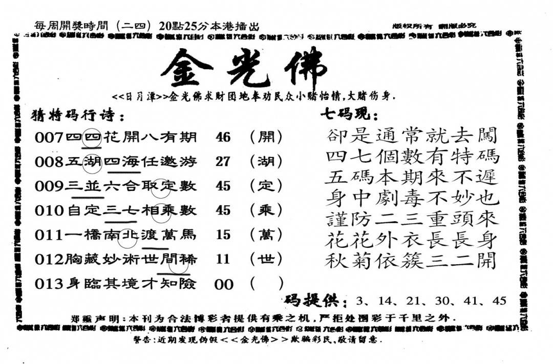 另版黄大仙灵码A