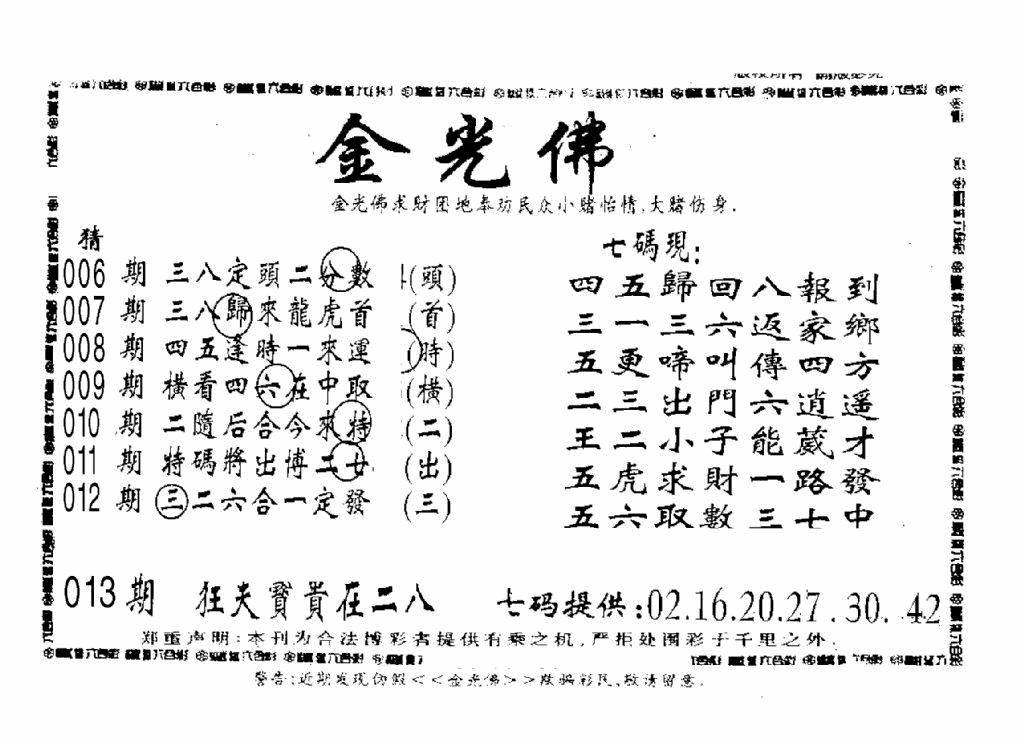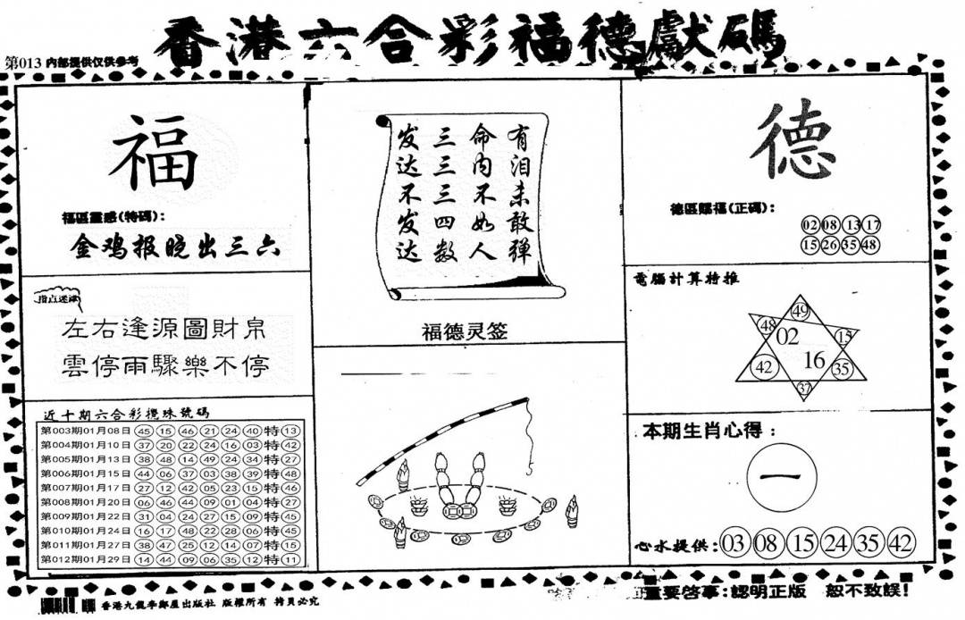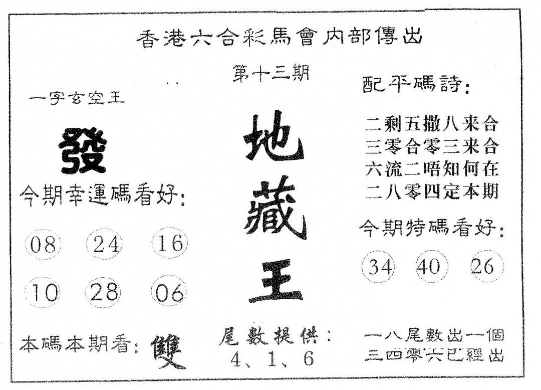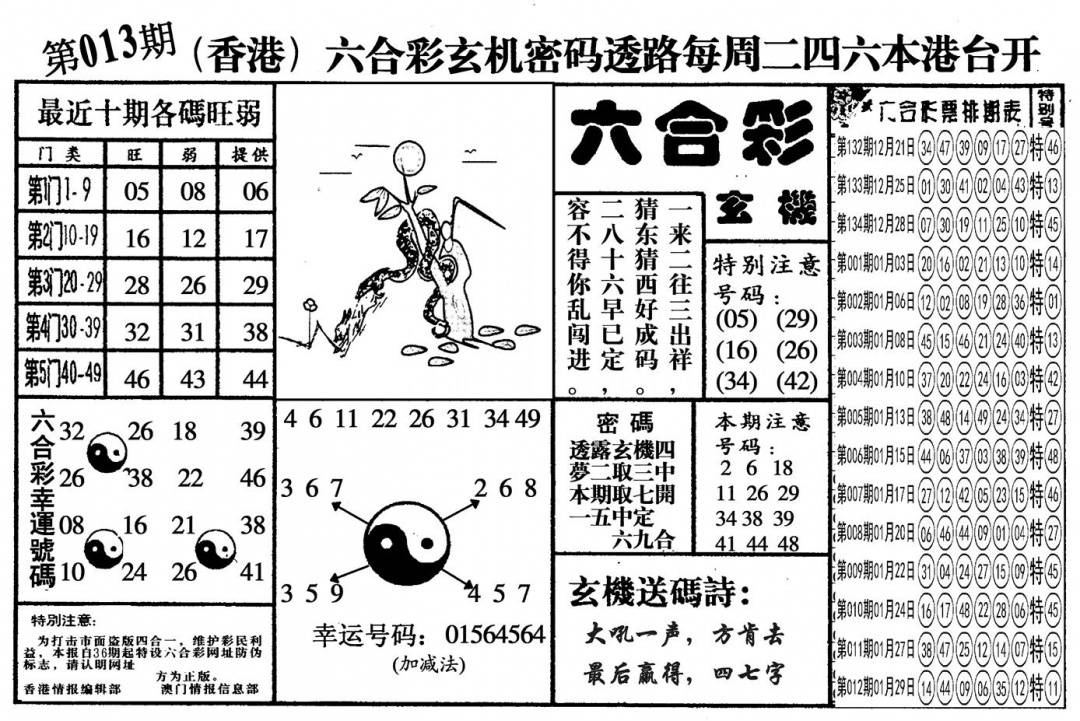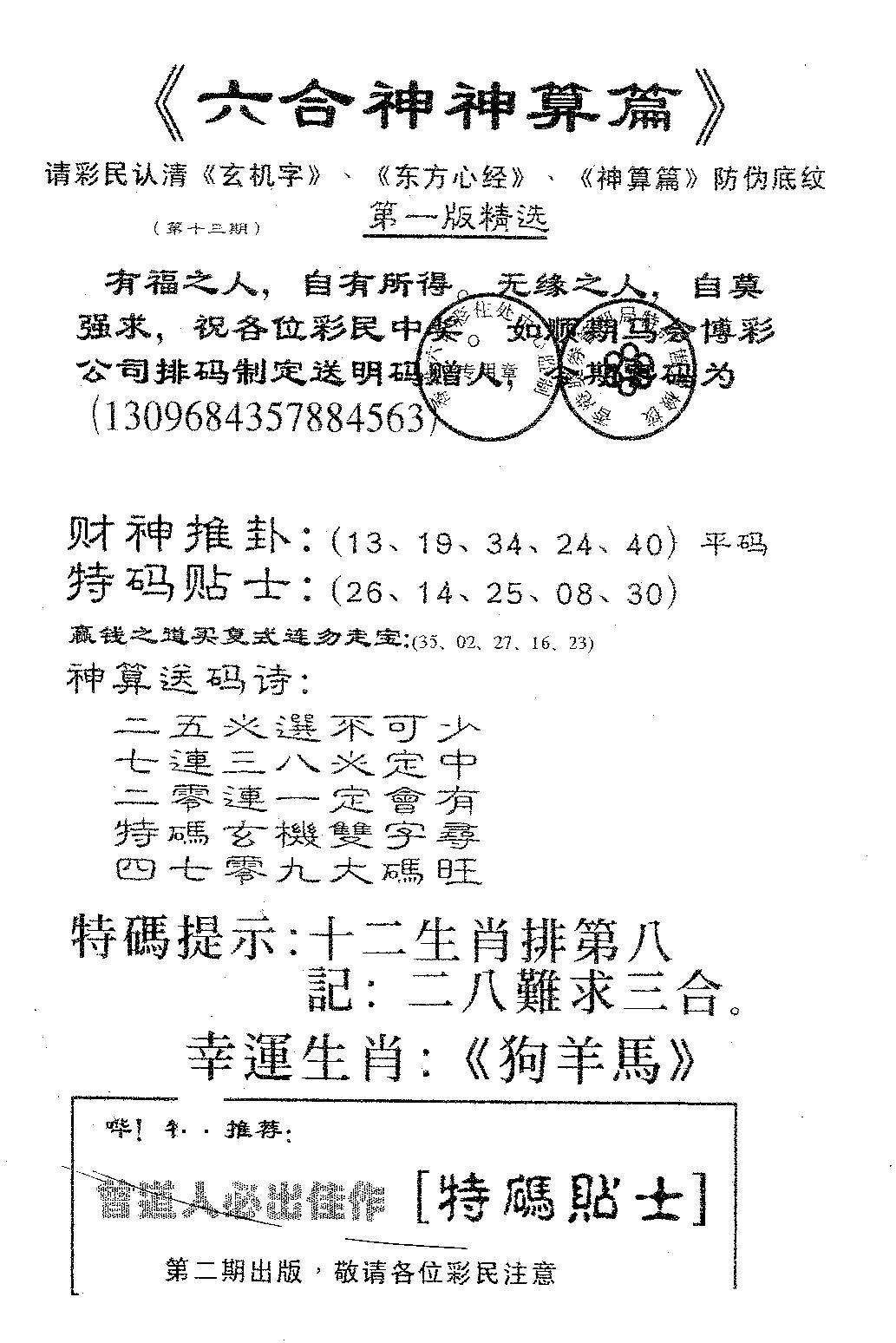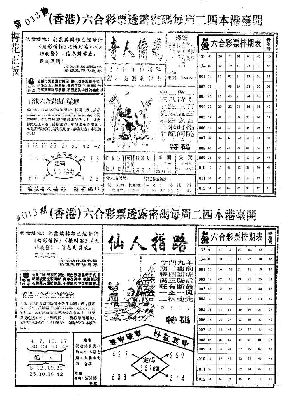 另版黄大仙灵码A