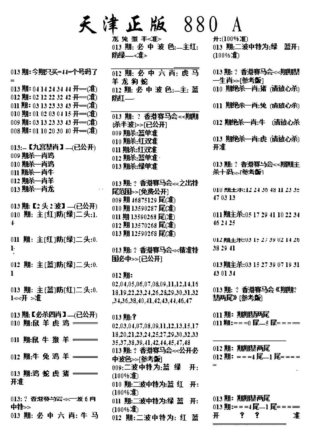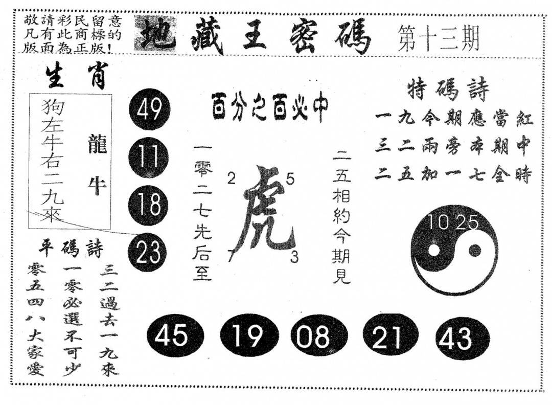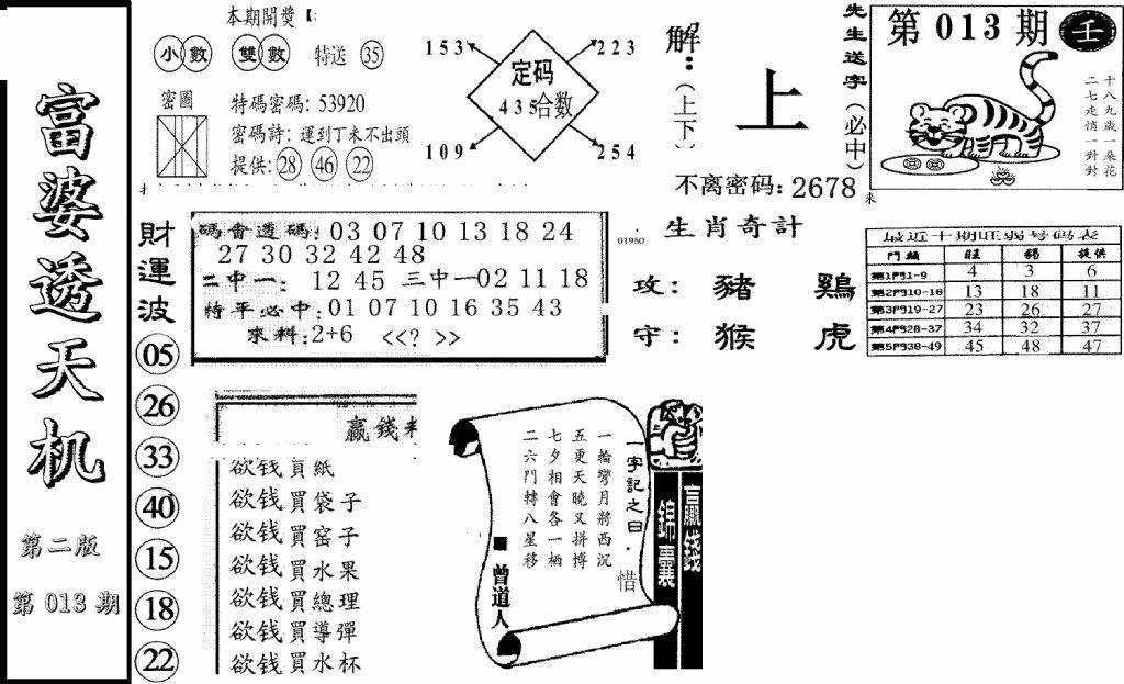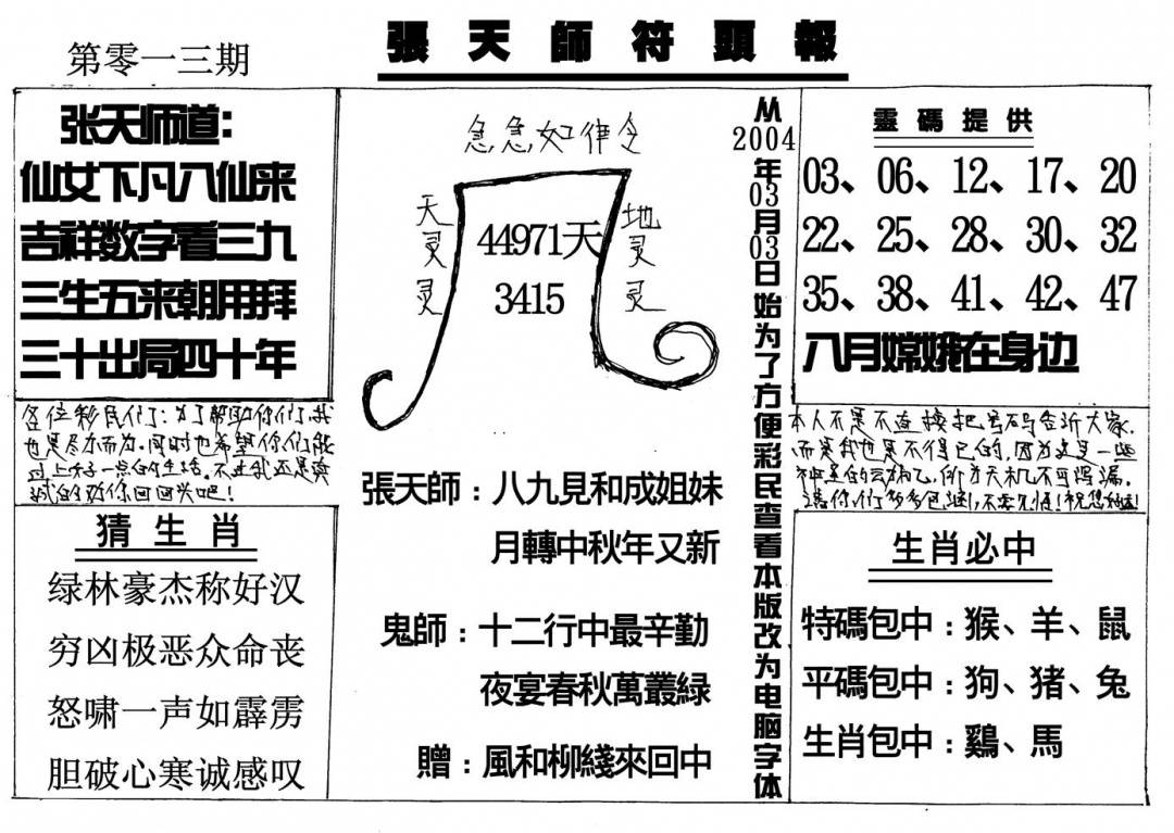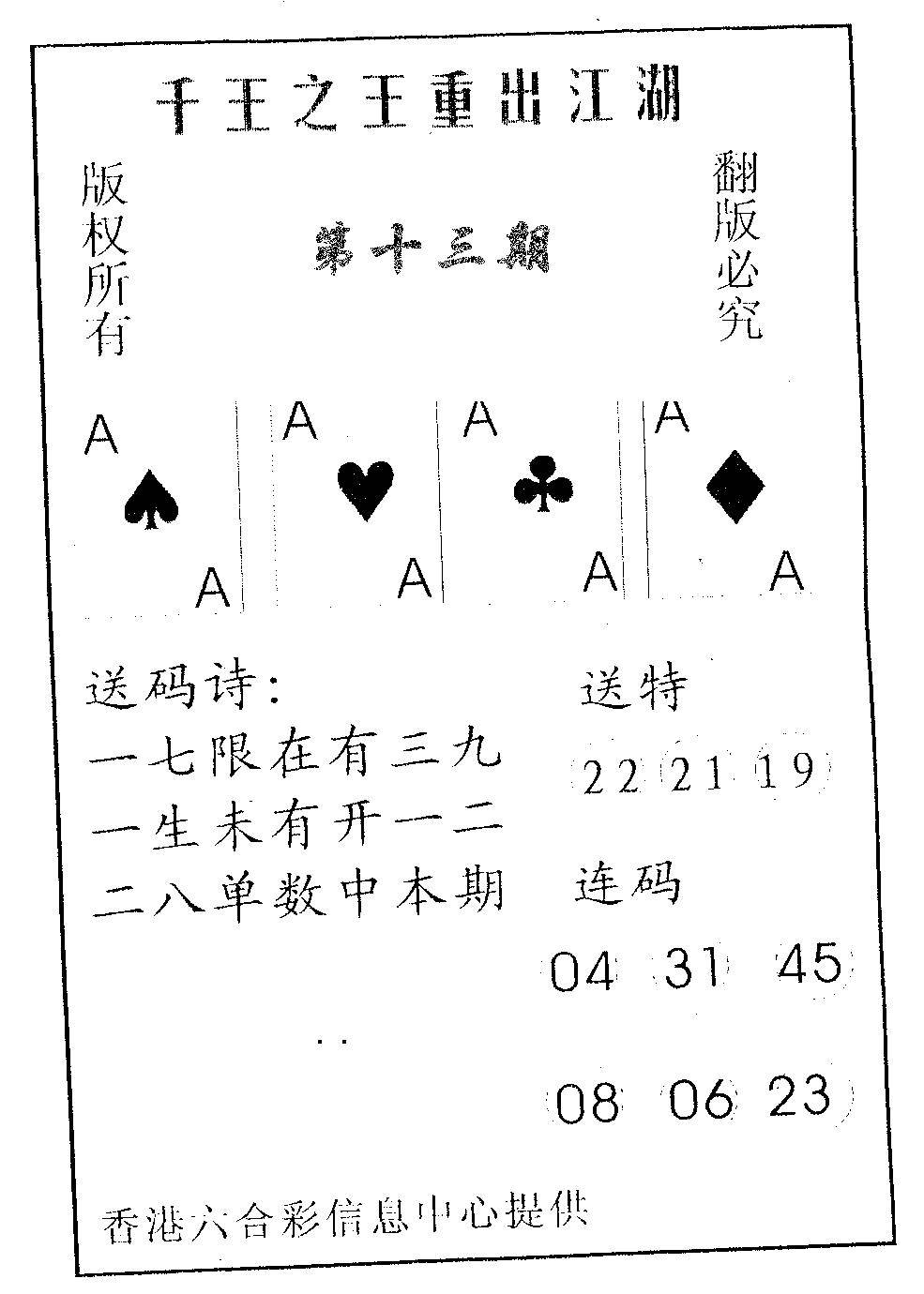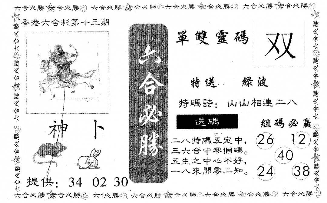 另版黄大仙灵码A