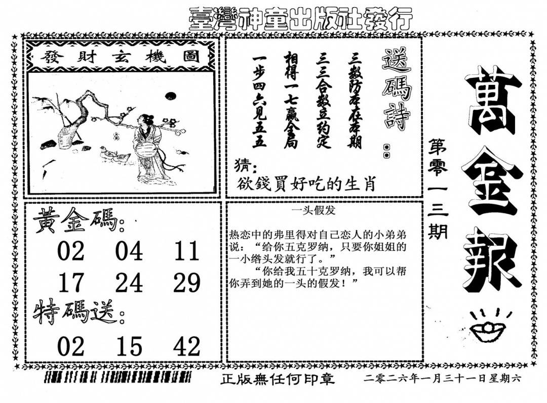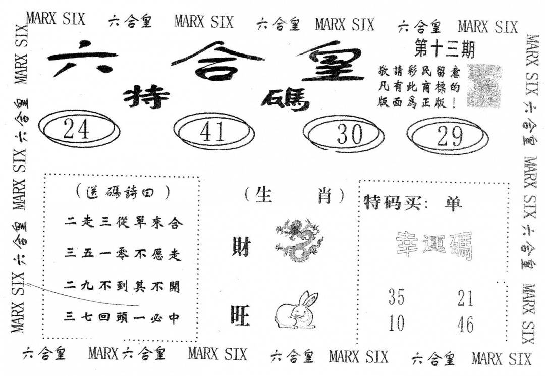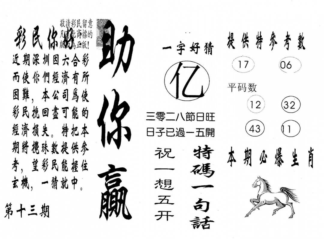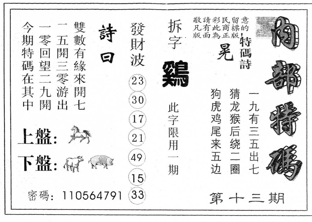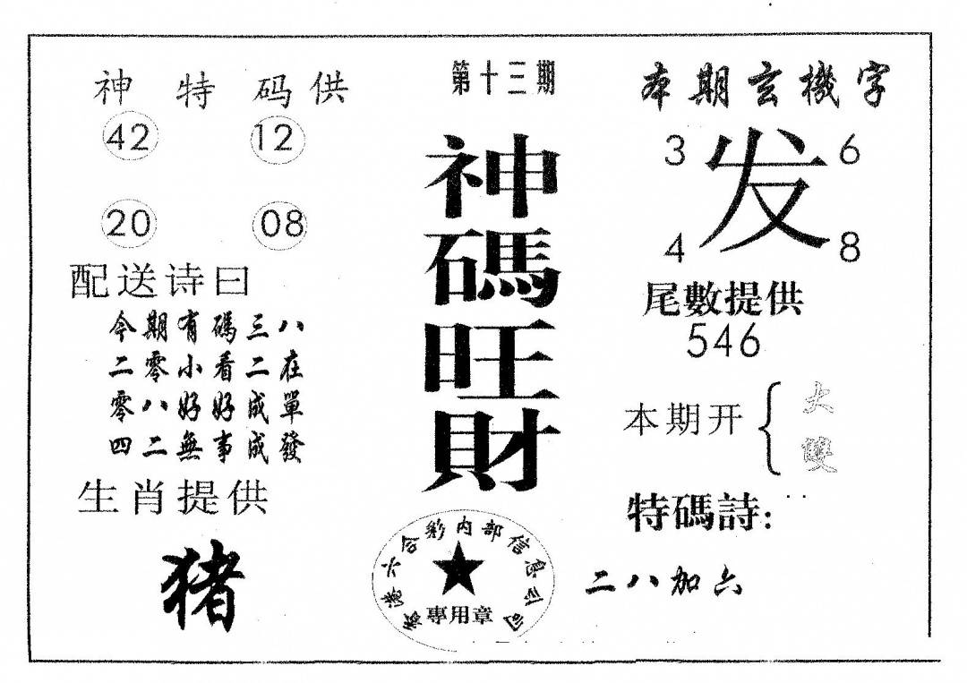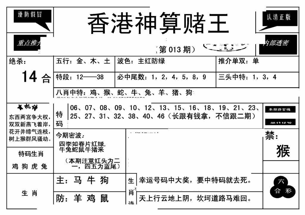 今日抓特码B(正版)