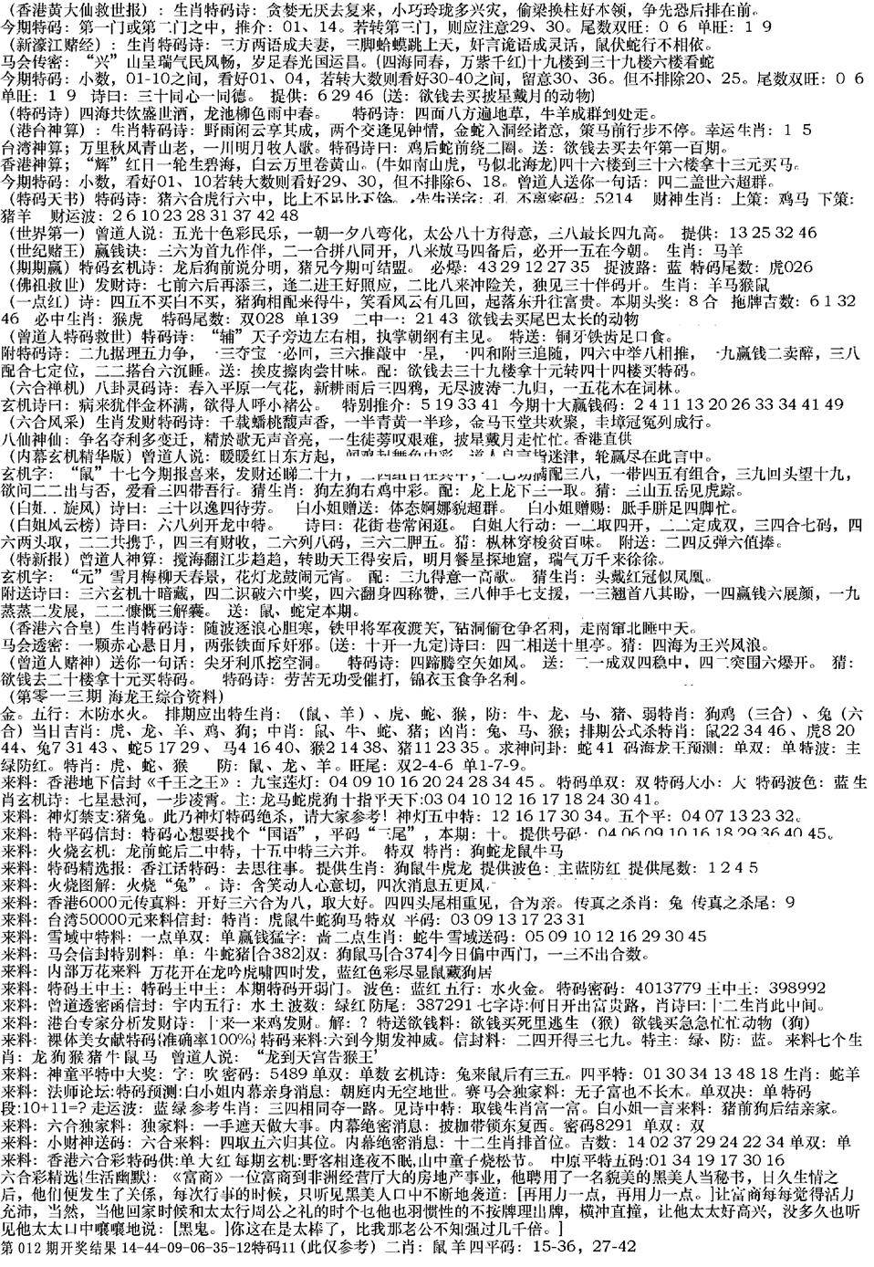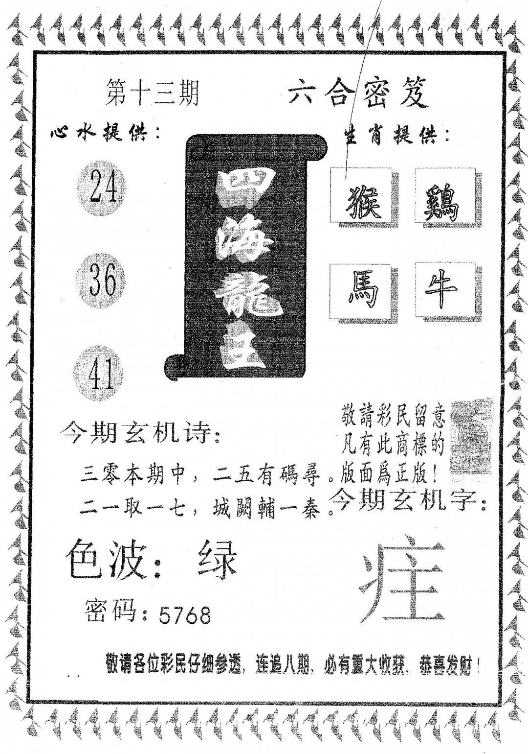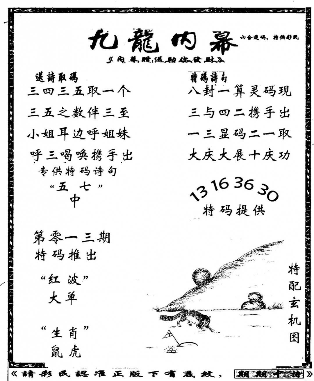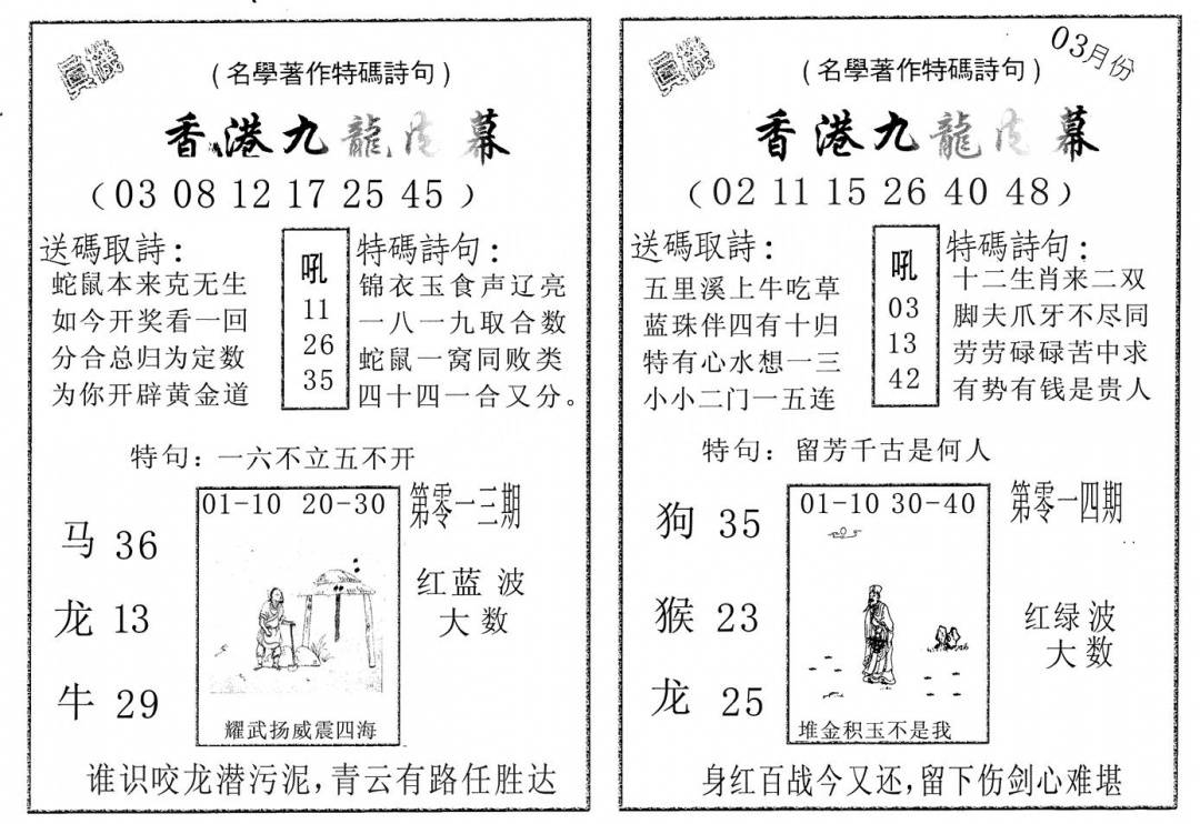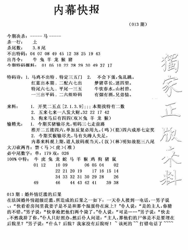 九龙内幕--开奖报