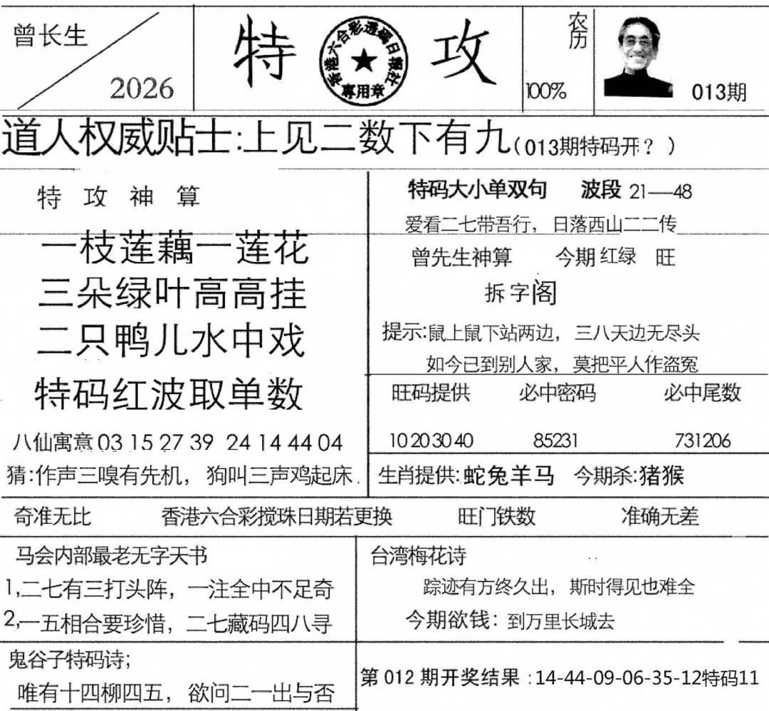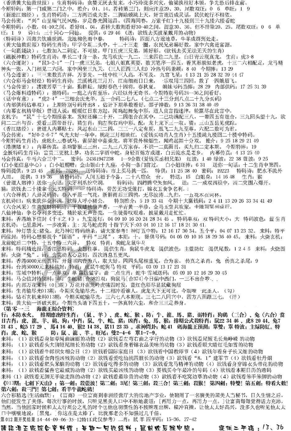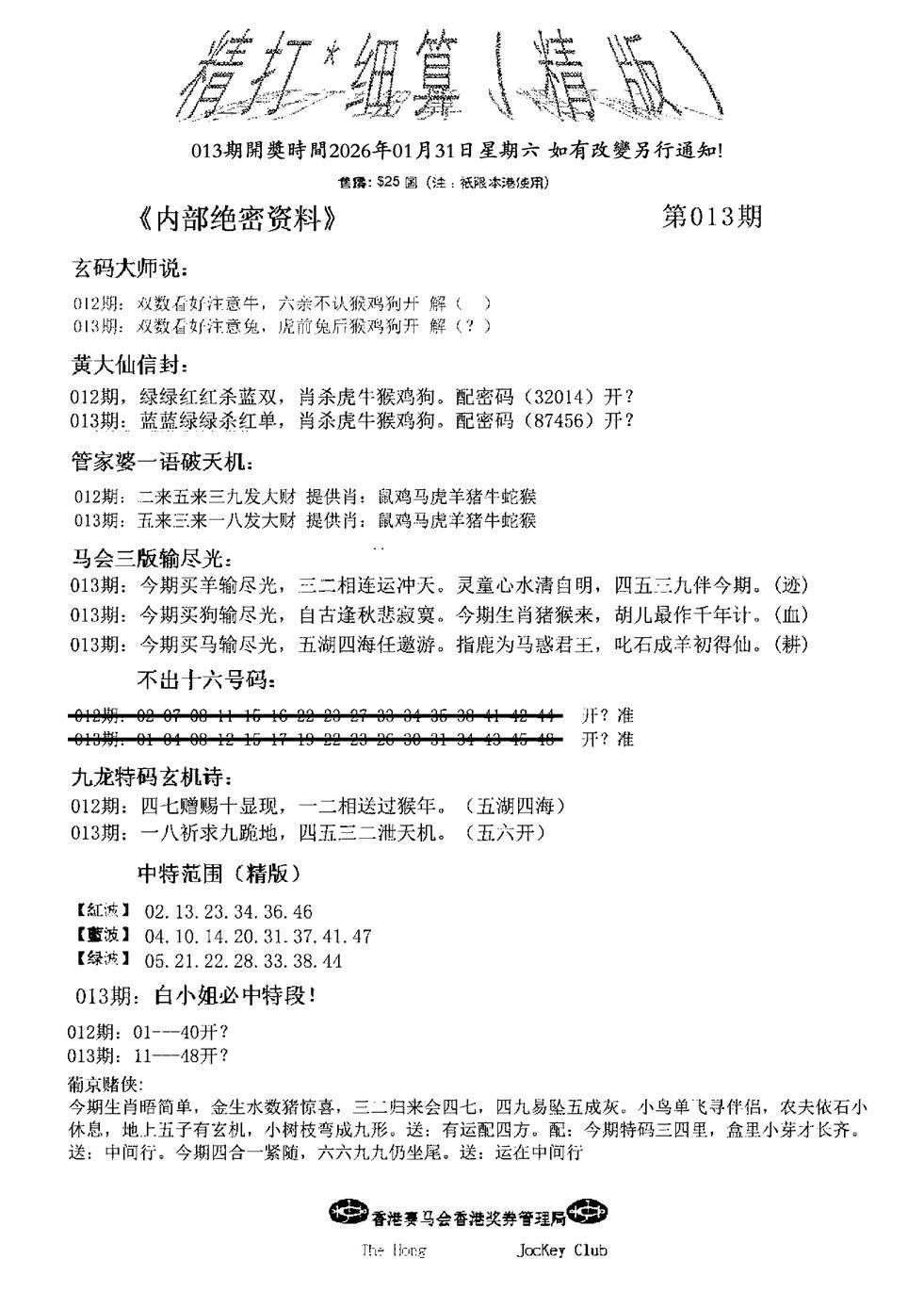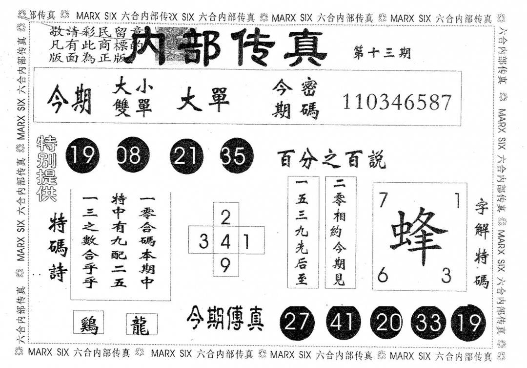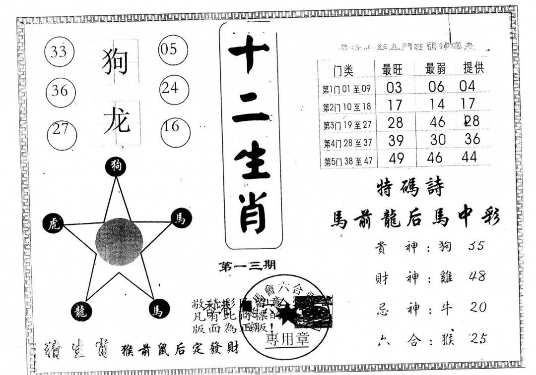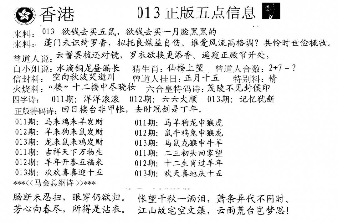 九龙内幕--开奖报