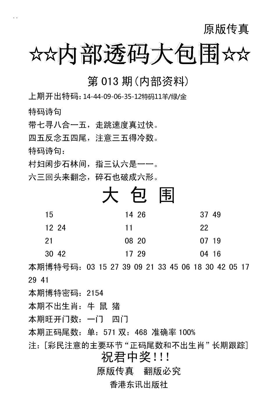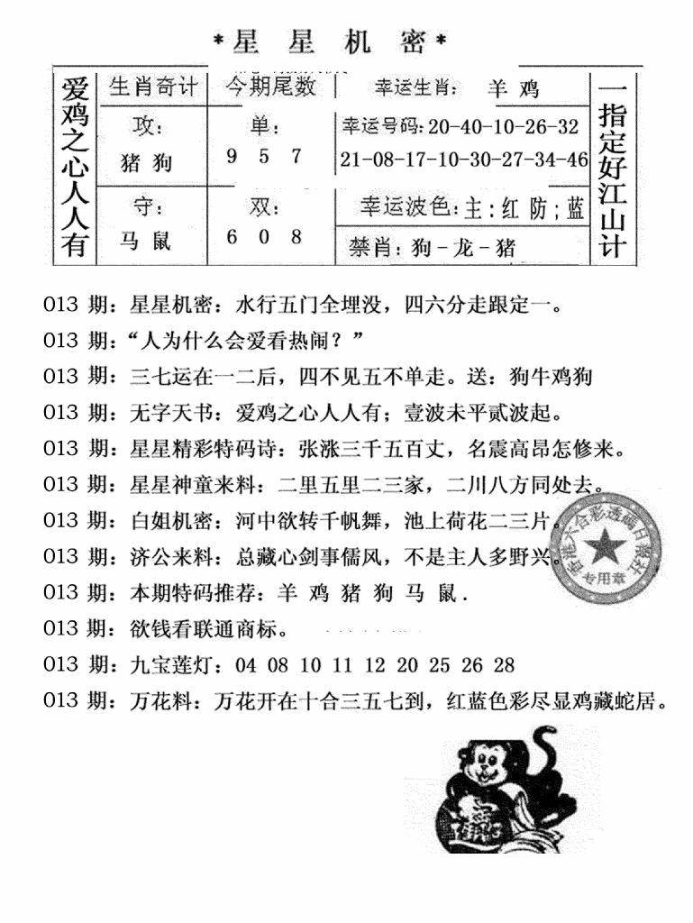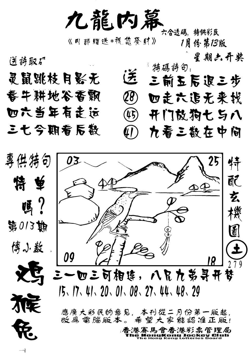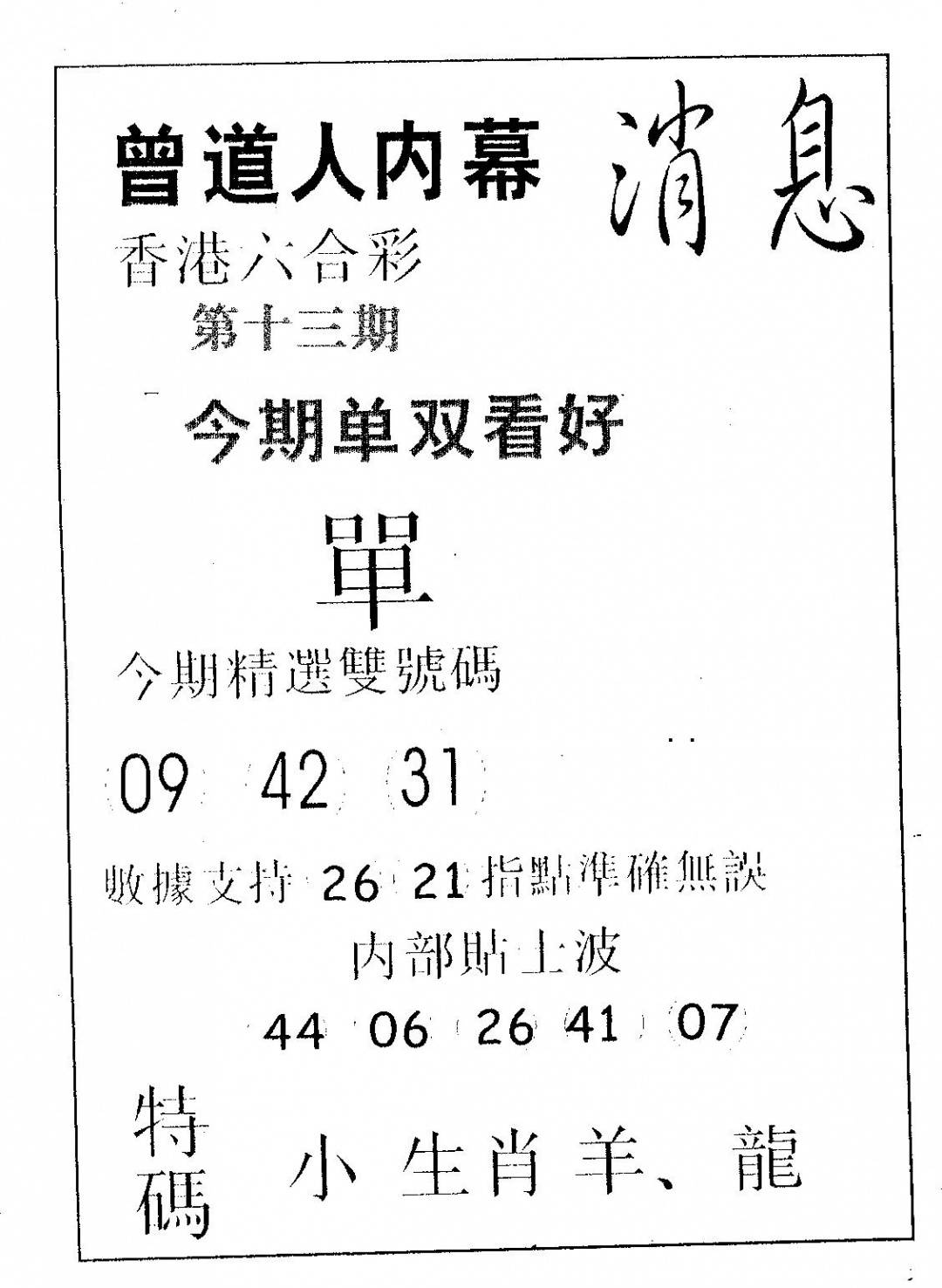 九龙内幕--开奖报