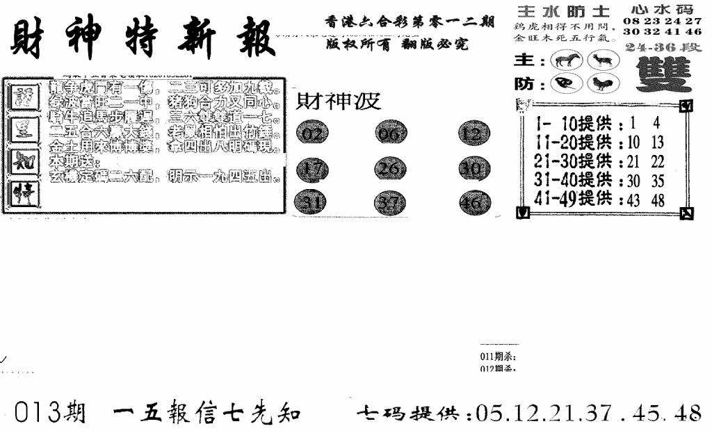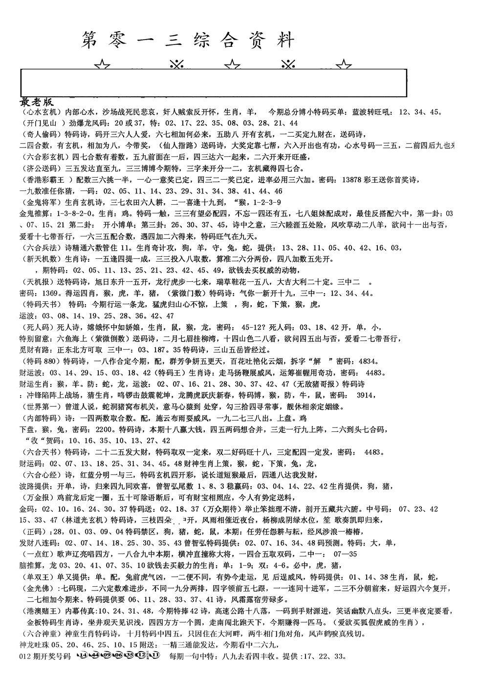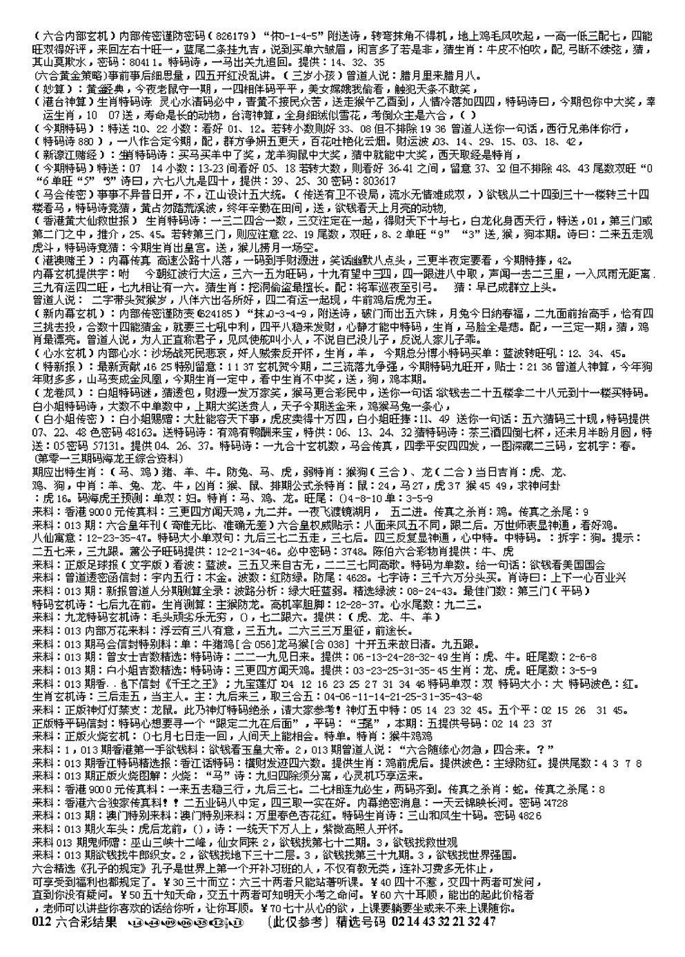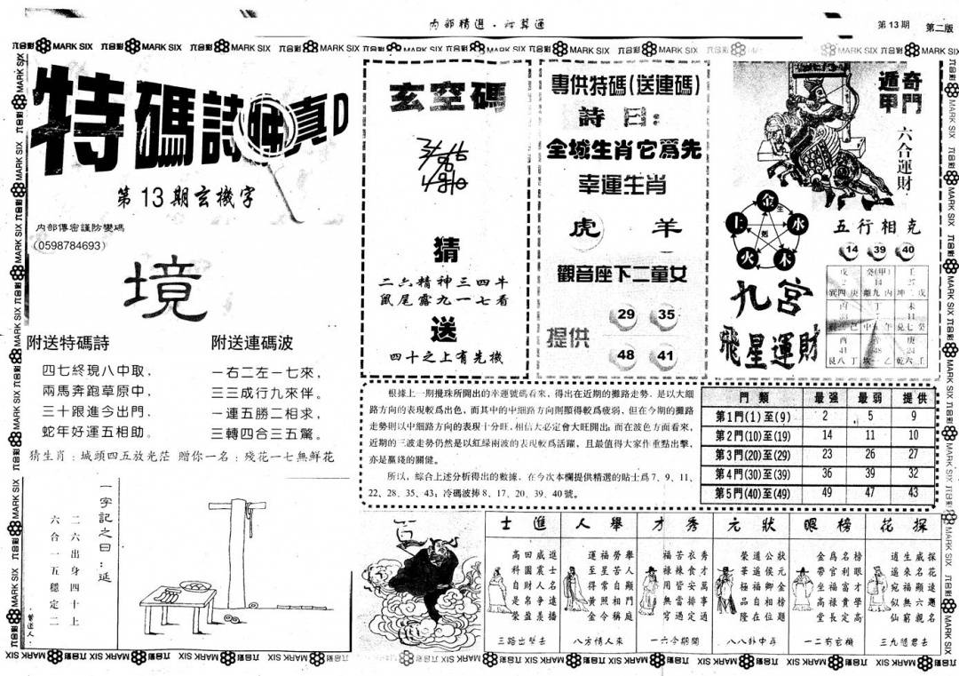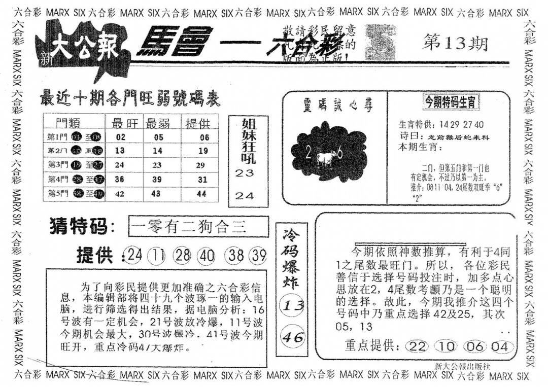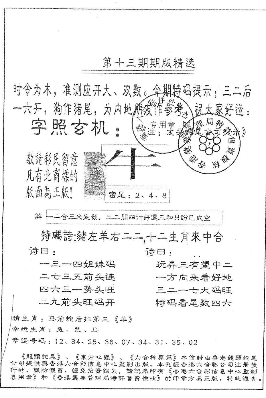 九龙内幕--开奖报