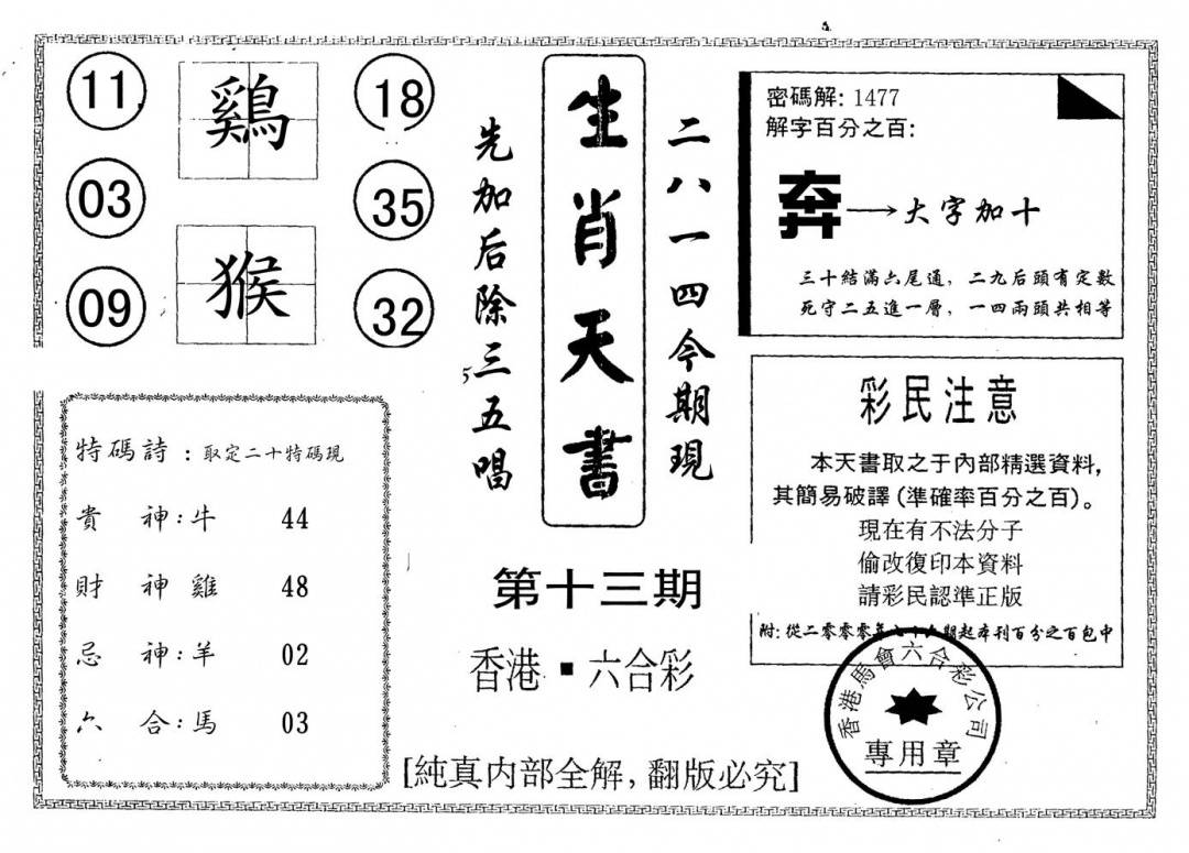 另版生肖天书