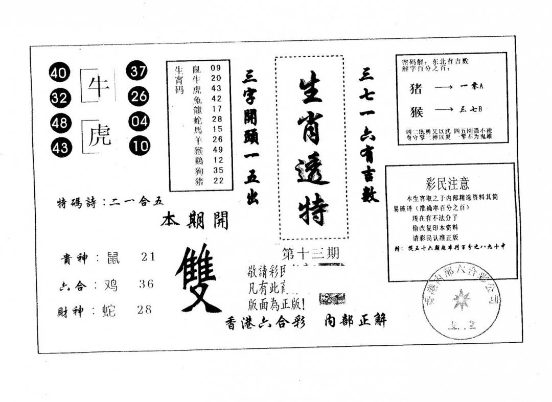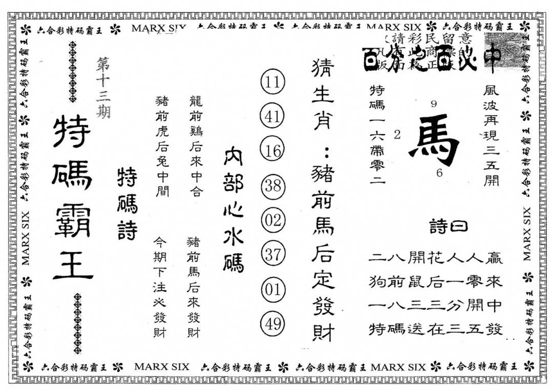 凤凰马经(信封)