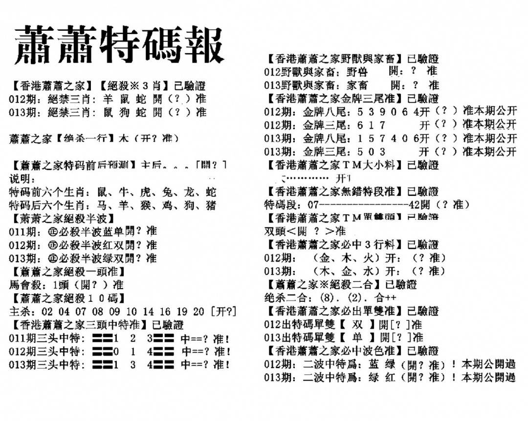萧萧特码报