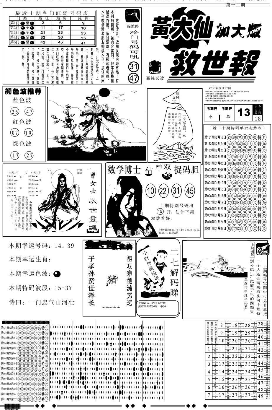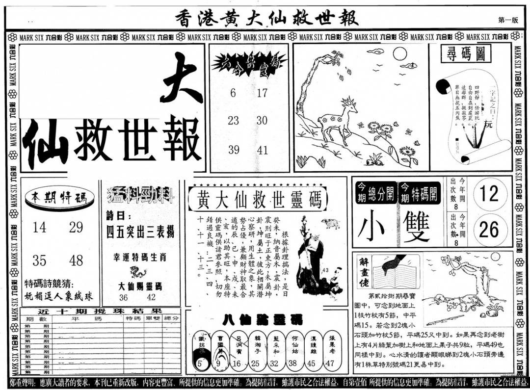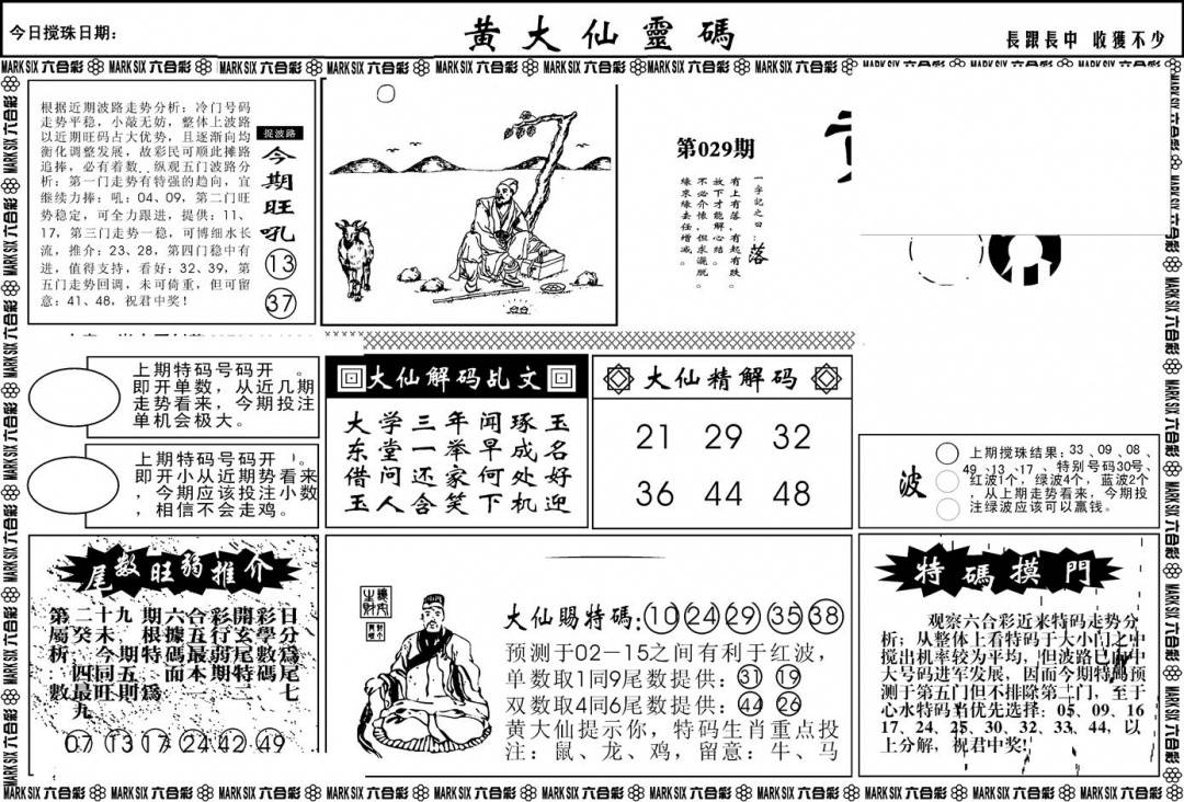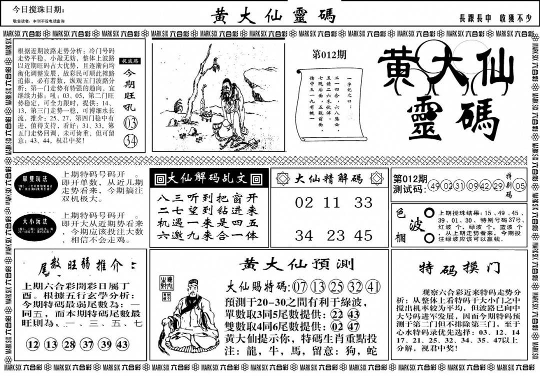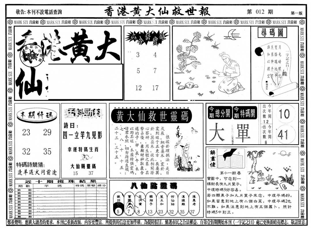 另版黄大仙灵码A