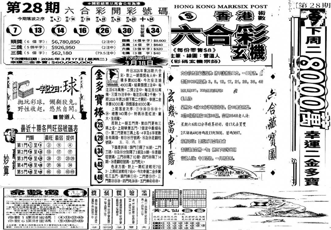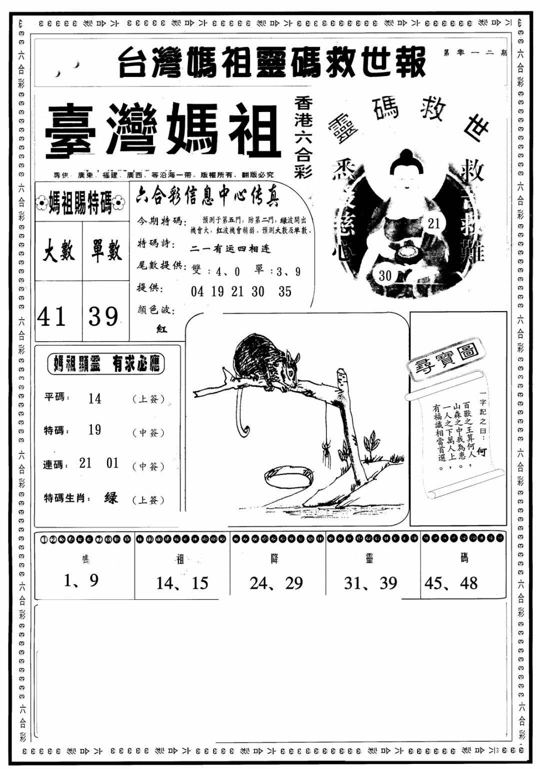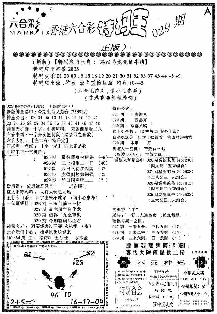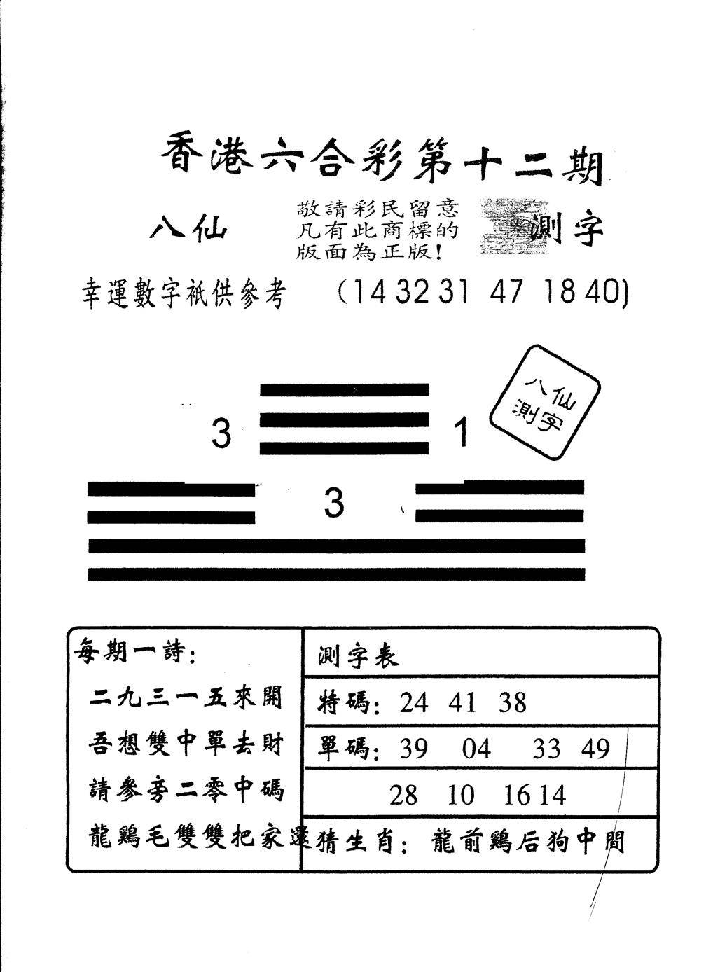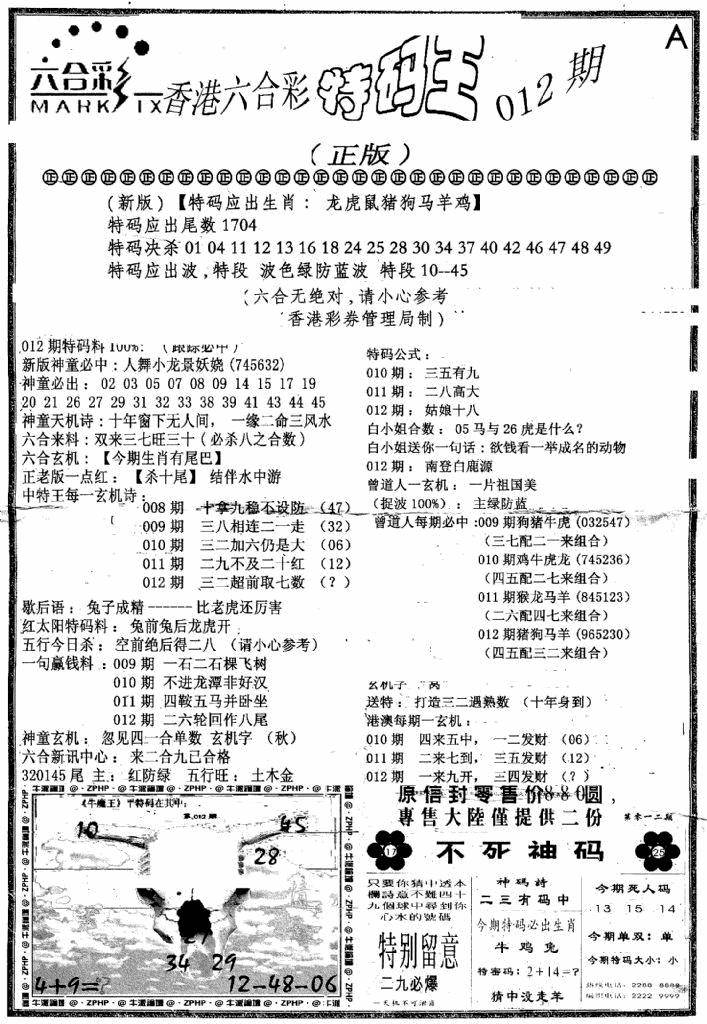 另版黄大仙灵码A