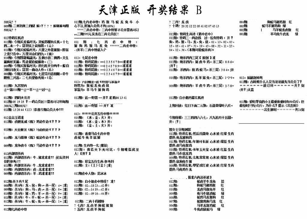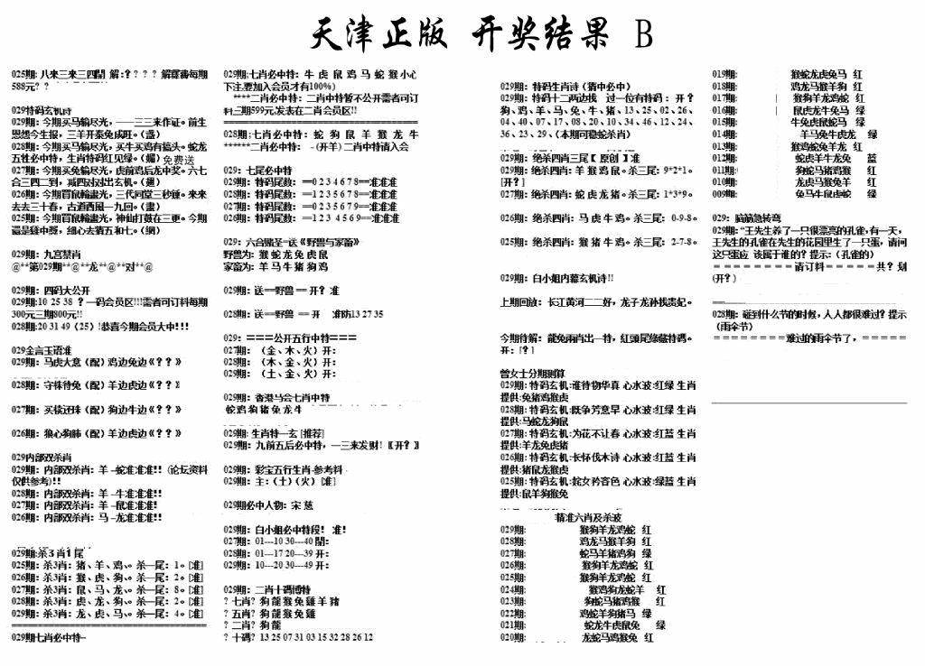 天津正版开奖结果B