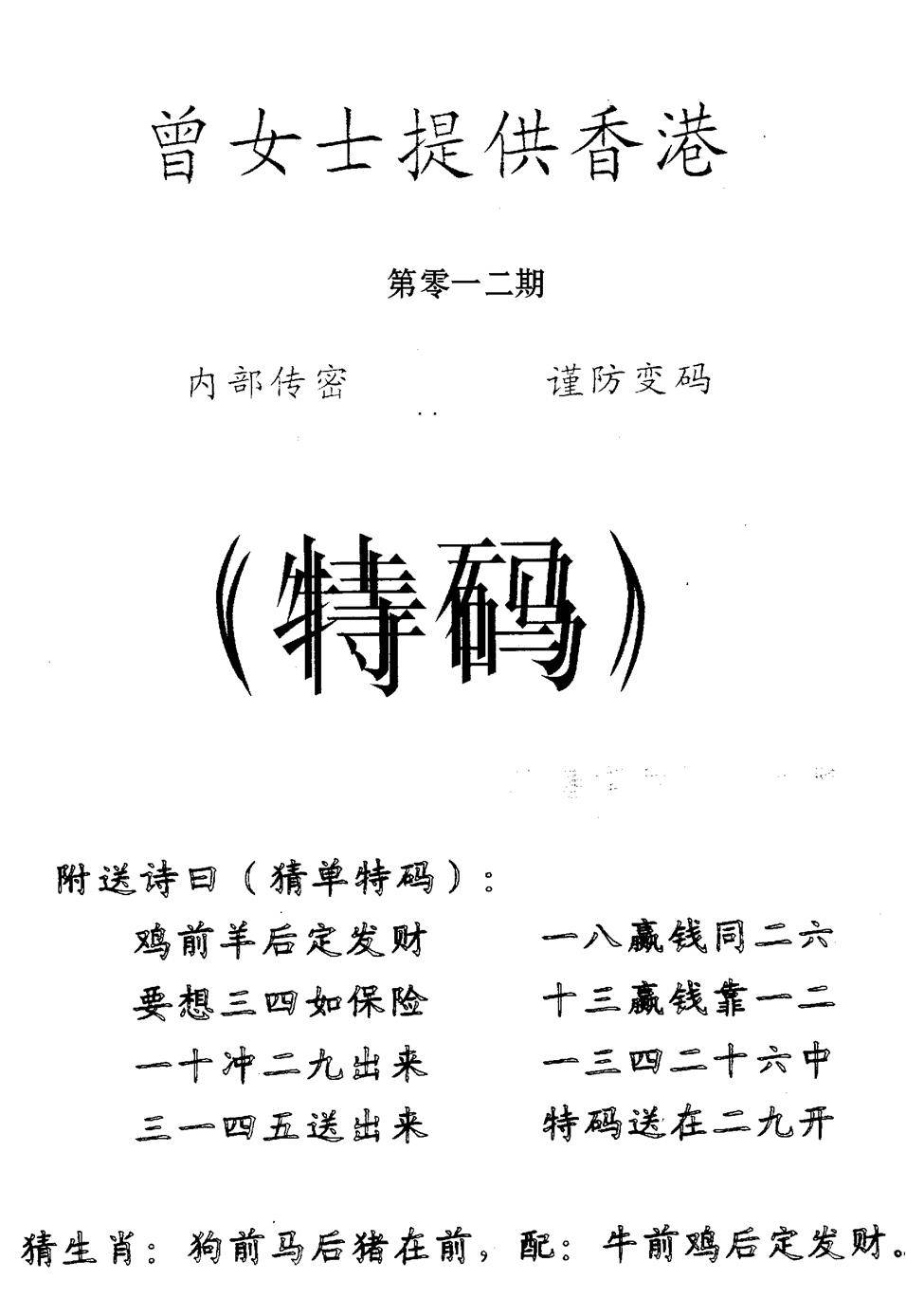 曾女士特码诗